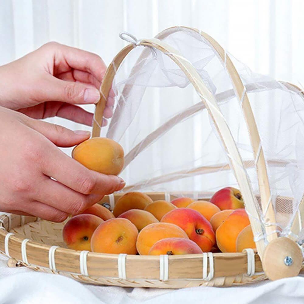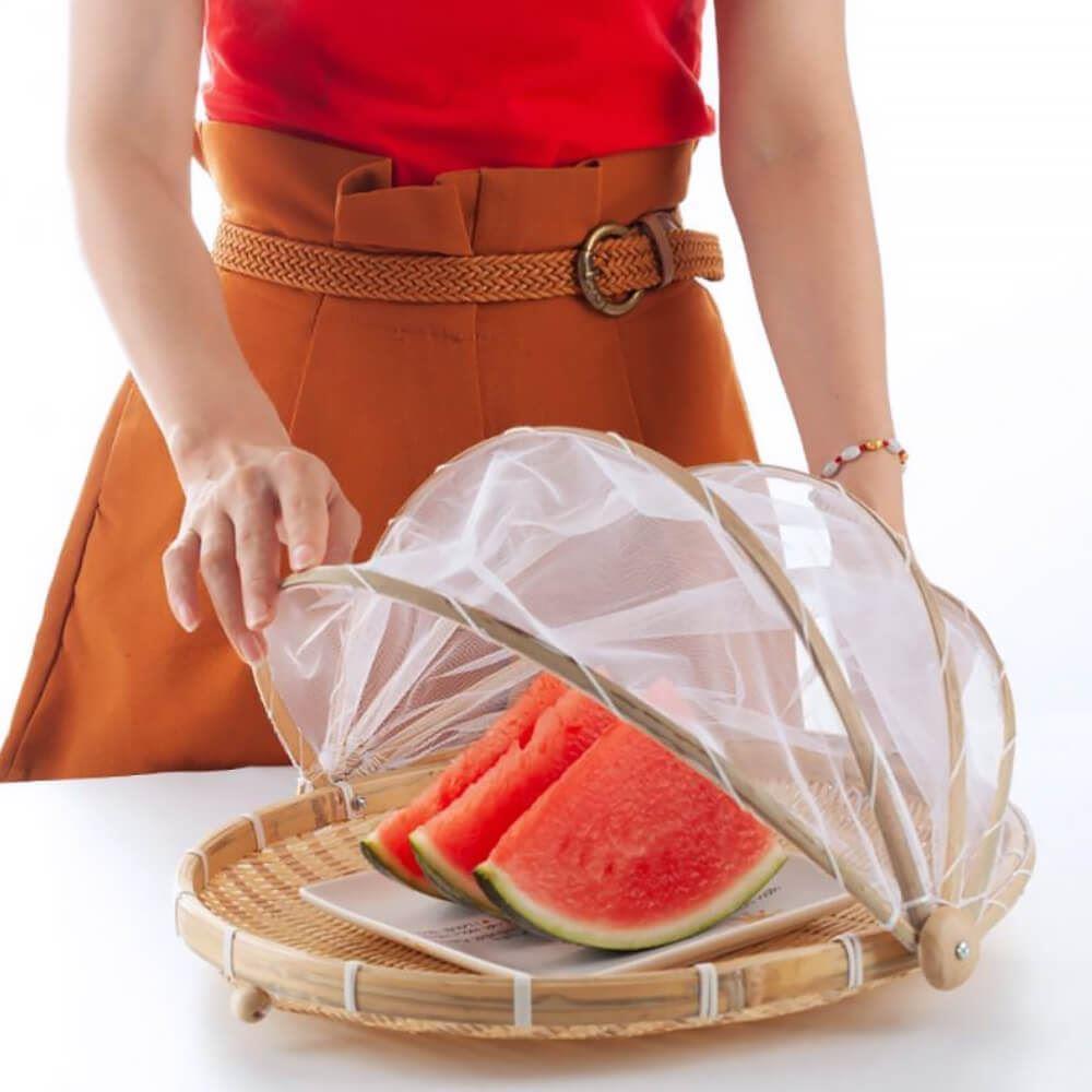 Servírovací podnos skvěle uschová vaše potraviny před otravným hmyzem. Ochranná síťka se snadno sklápí i odklápí. Pečivo, zákusky, ovoce či zelenina tak zůstanou v bezpečí, aniž by si na nich mouchy nebo vosy smlsly. Servírovací tác je vhodný pro pikniky či zahradní stolování a grilování. Potraviny na něm vypadají i pěkně naservírované. Podnos je zároveň stylový doplněk a je vyroben z bambusu.