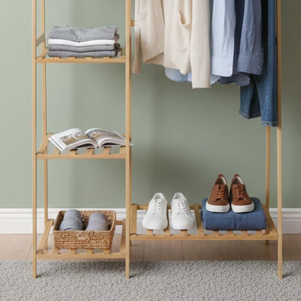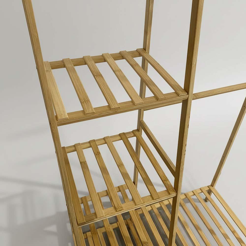Uspořádejte si oblečení jednoduše a efektivně. Tento bambusový stojan vám poskytne dostatek prostoru pro zavěšení i uložení věcí. Díky policím budete mít vše přehledně rozdělené. Oblečení už nebude ležet na židli nebo posteli. Design zapadne do jakéhokoliv interiéru. Praktický pomocník pro lepší organizaci.
