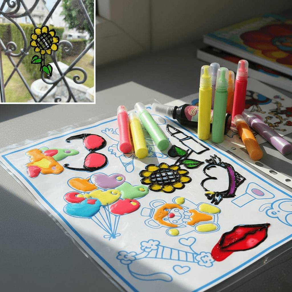 Barvy na sklo s předlohou bude super dárek pro všechny kreativní děti. Mohou si vybarvit obrázek na předloze a pak nalepit třeba na okno. Krásně si tak zpestří pokojíček. Hotový obrázek lze nalepit nejen na okno, ale také jiné sklo, zrcadlo nebo třeba dlaždičky. Snadno se nalepí. Z daného povrchu jdou dobře dolu a nezanechávají žádné fleky.