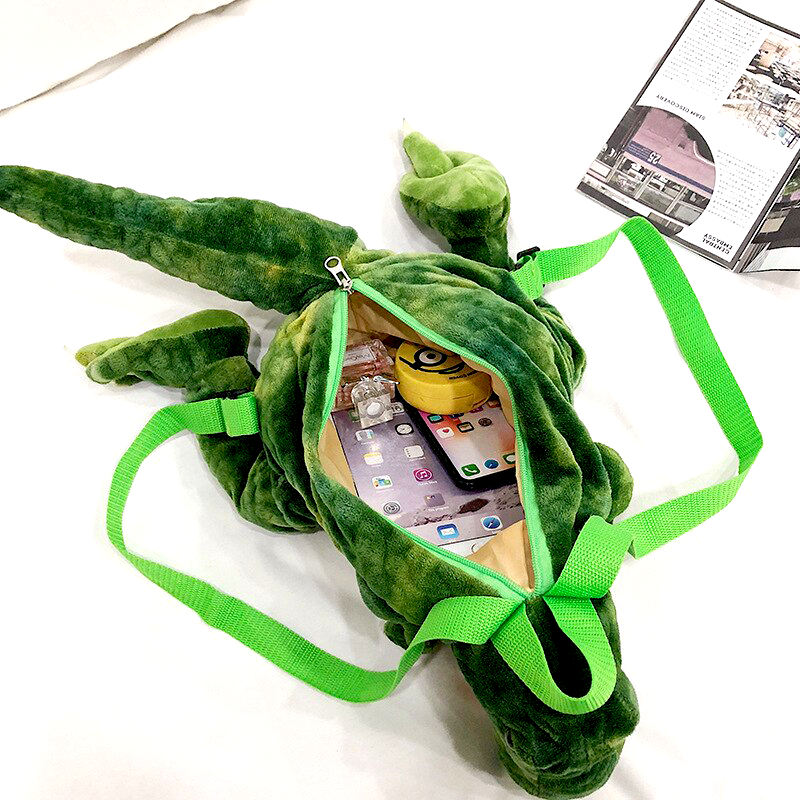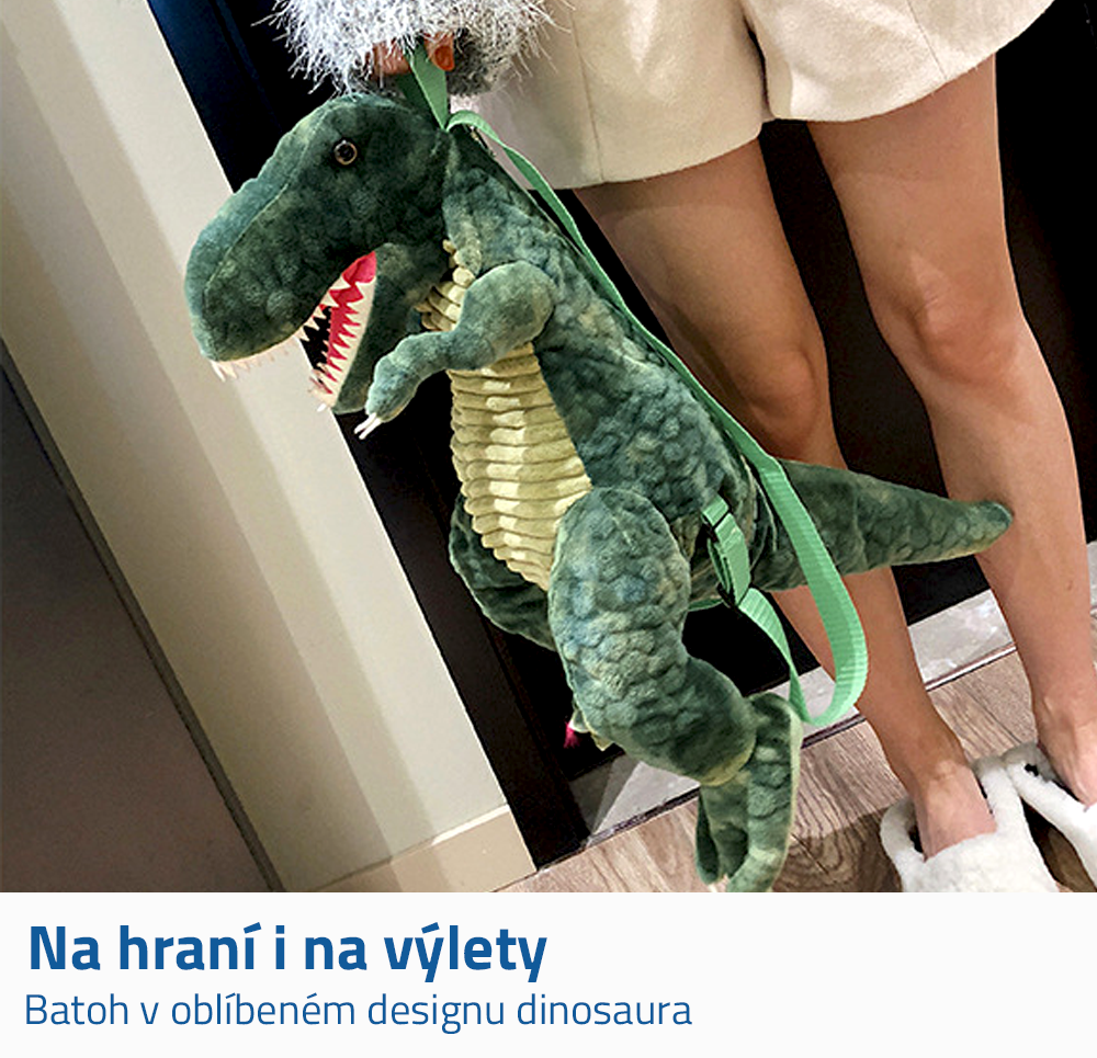 Dinosaurus je vyroben z příjemného plyšového materiálu a má nastavitelné popruhy. Děti do batohu můžou dát své hračky či jiné drobnosti. Vyrazit s ním můžou kamkoliv – na výlety či na krátké přejezdy.