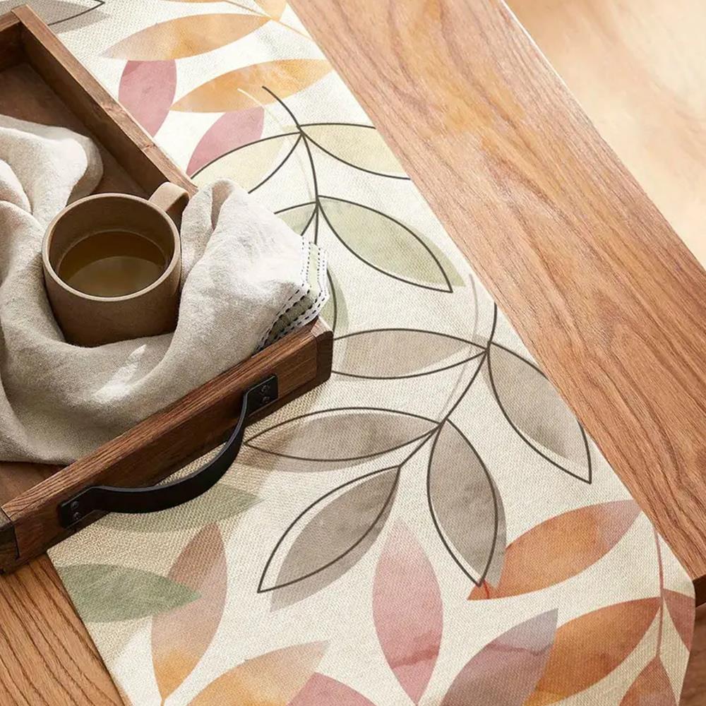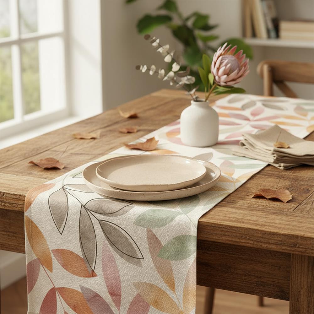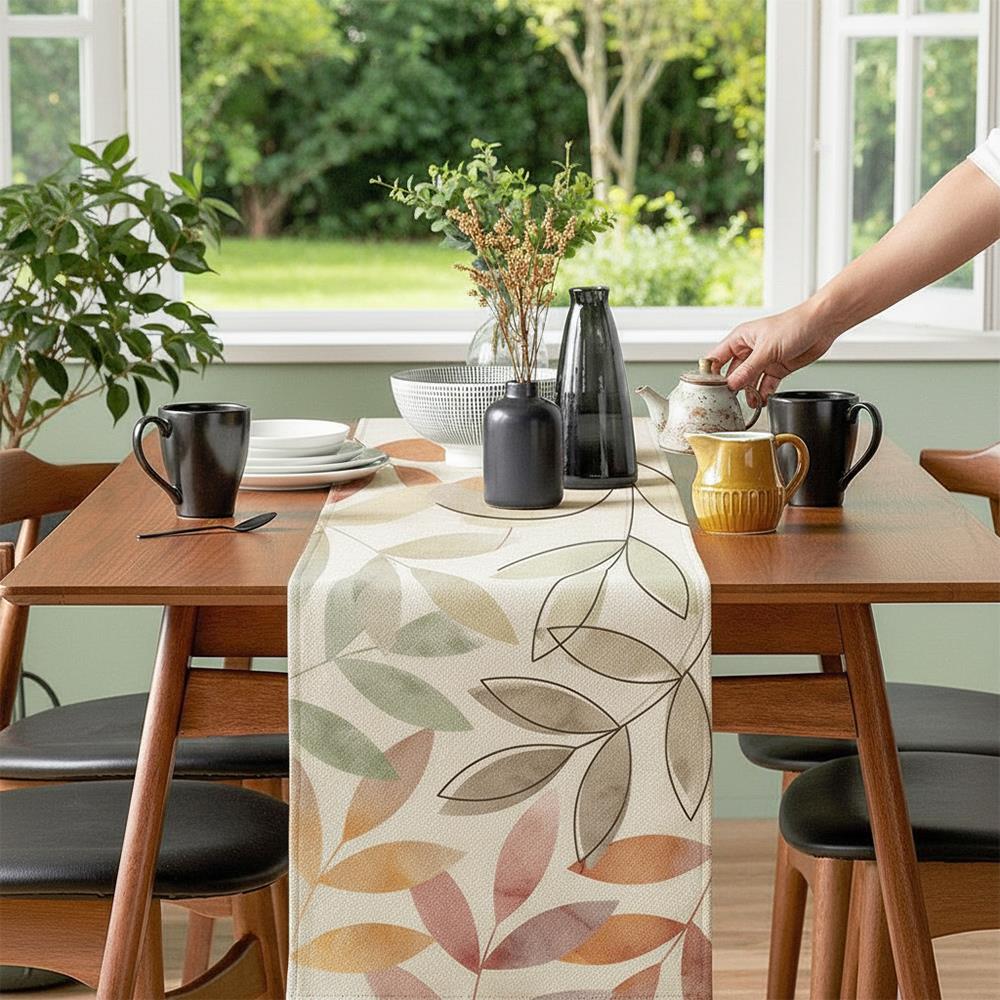 Vneste do svého domova přírodní eleganci s tímto stylovým běhounem na stůl s motivem listů. Jemné pastelové tóny zelené, oranžové a béžové zútulní každé stolování a přinesou harmonický nádech do vašeho interiéru – ať už ve všední den nebo při slavnostní příležitosti. Kvalitní a snadno udržovatelný se skvěle hodí do moderně i rustikálně zařízených místností.
