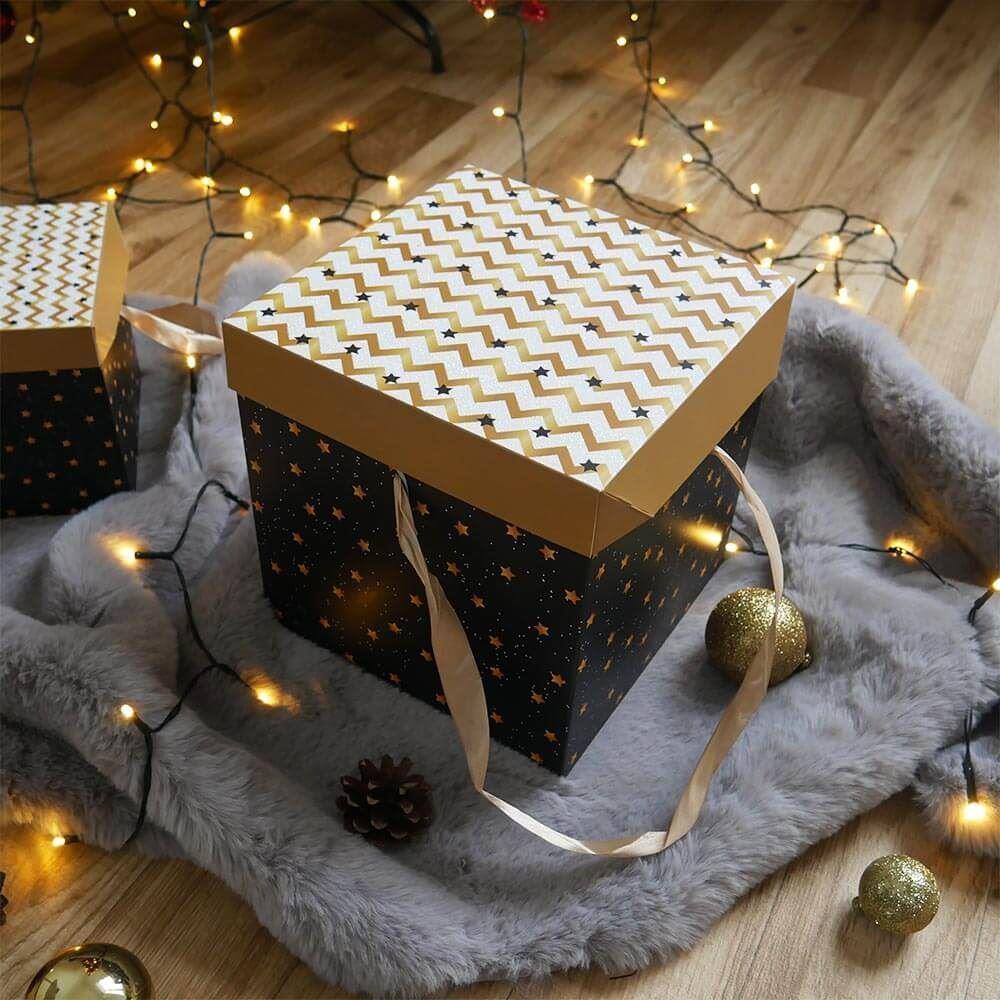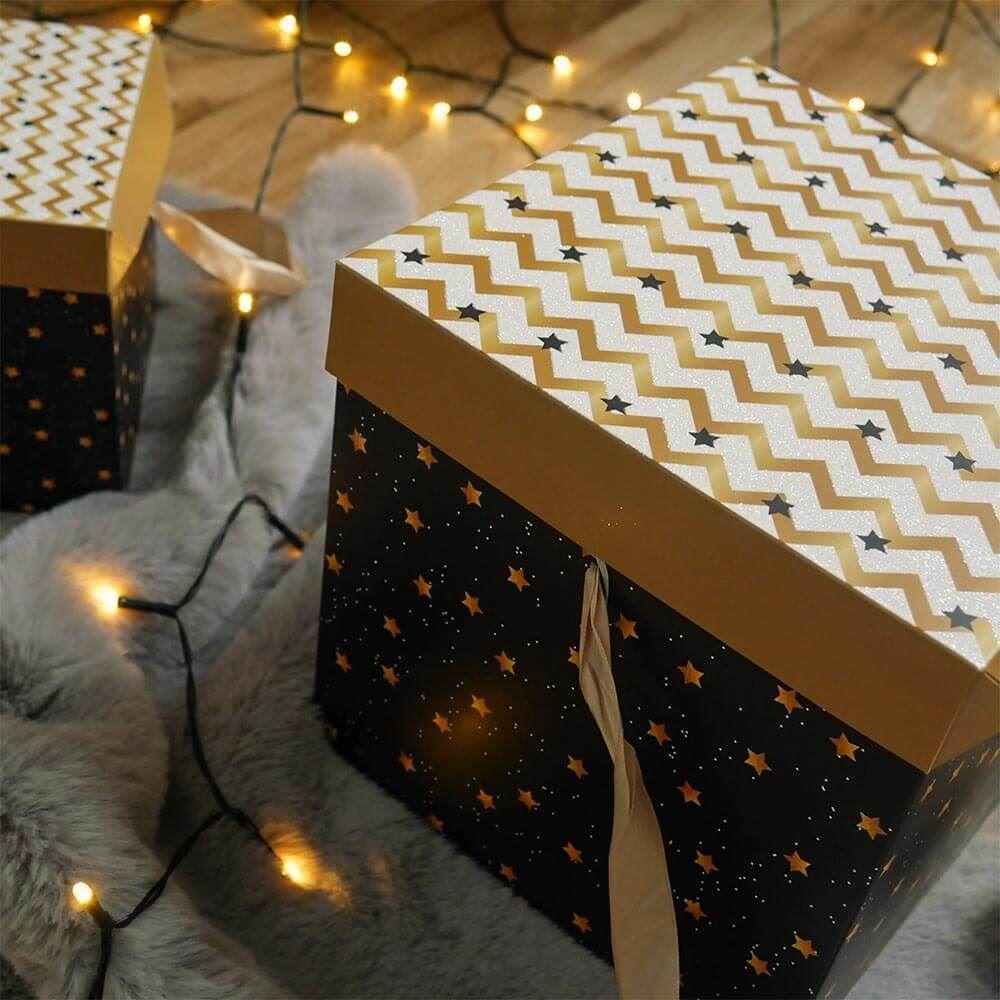 Koupili jste úžasný dárek, ale říkáte si, že se k němu nehodí žádná dárková taška nebo balicí papír? Vsaďte na dárkové krabičky, které jsou nejen efektní, ale i šikovné! Každá z těchto krabiček se odesílá v rozloženém stavu, ale to neznamená, že byste si měli přidělávat práci – naopak, jednoduše a bez lepení ji složíte a vznikne vám krychle o rozměru hrany 22 cm. Vybrat si můžete z několika motivů, které se hodí na všechny možné příležitosti, od oslav po Vánoce, nebo třeba na uložení drobností u vás doma.