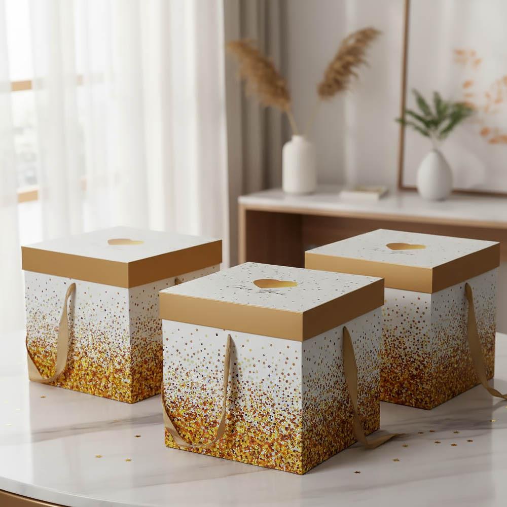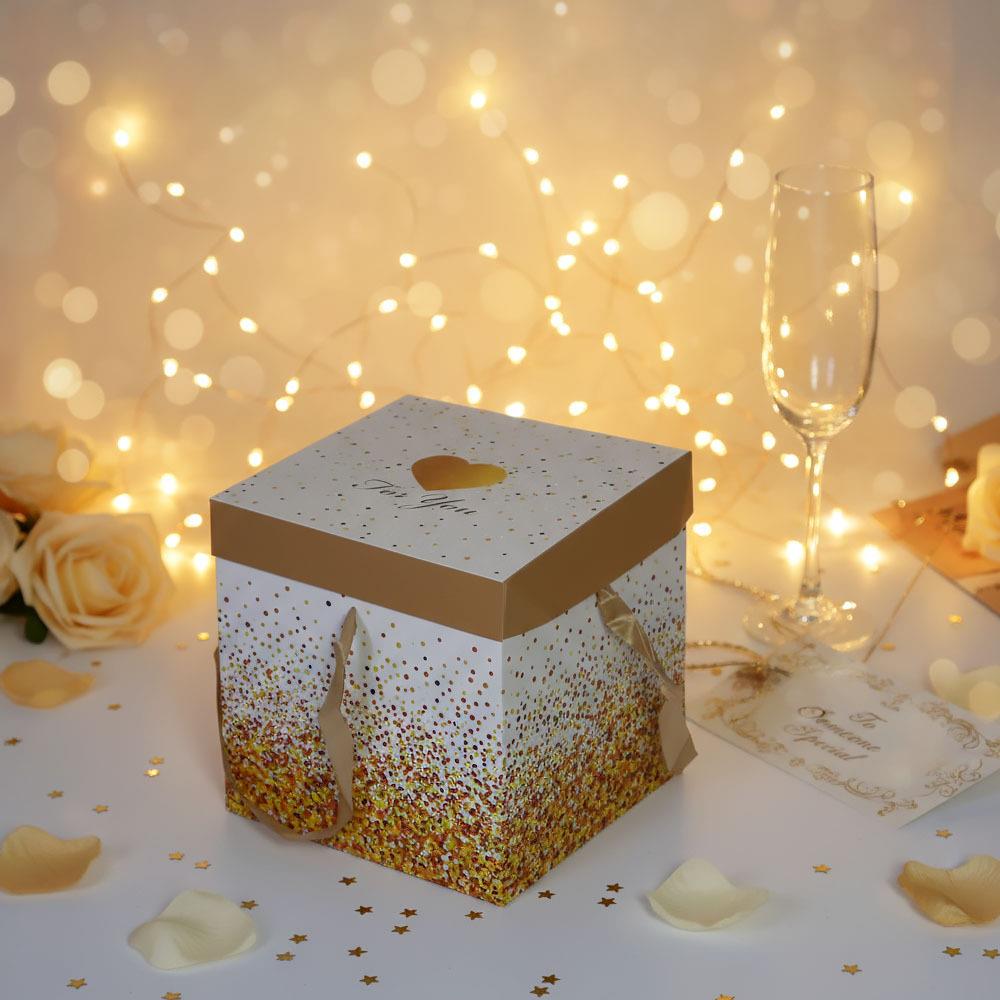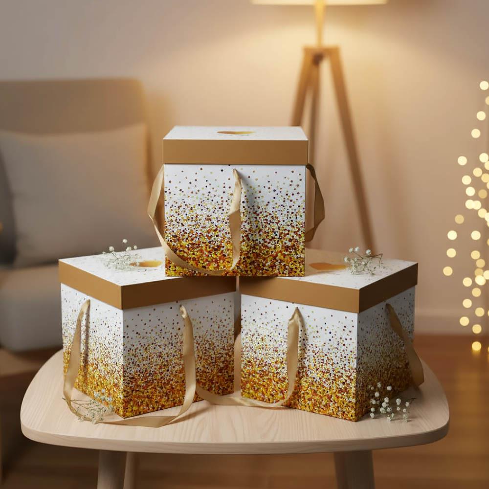 Koupili jste úžasný dárek, ale říkáte si, že se k němu nehodí žádná dárková taška nebo balicí papír? Vsaďte na dárkové krabičky, které jsou nejen efektní, ale i šikovné! Každá z těchto krabiček se odesílá v rozloženém stavu, ale to neznamená, že byste si měli přidělávat práci – naopak, jednoduše a bez lepení ji složíte a vznikne vám krychle o rozměru hrany 22 cm. Vybrat si můžete z několika motivů, které se hodí na všechny možné příležitosti, od oslav po Vánoce, nebo třeba na uložení drobností u vás doma.