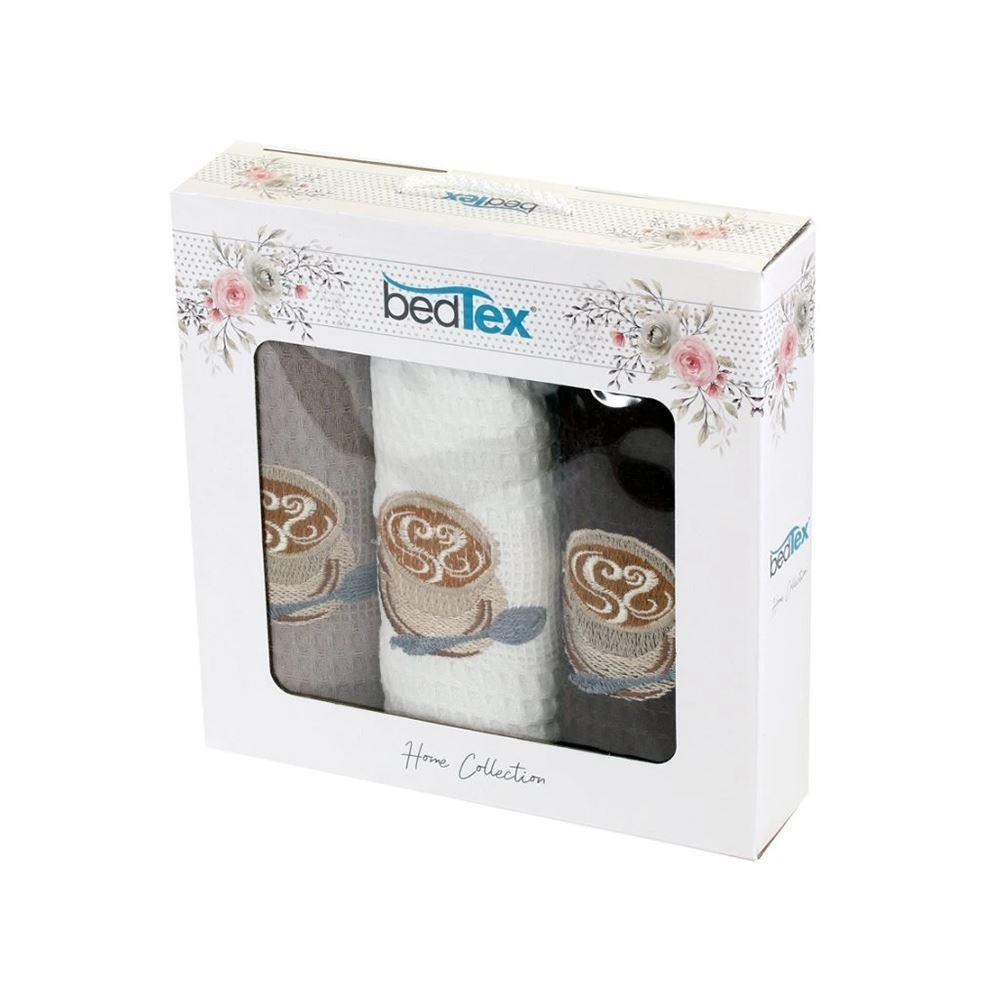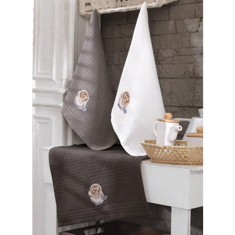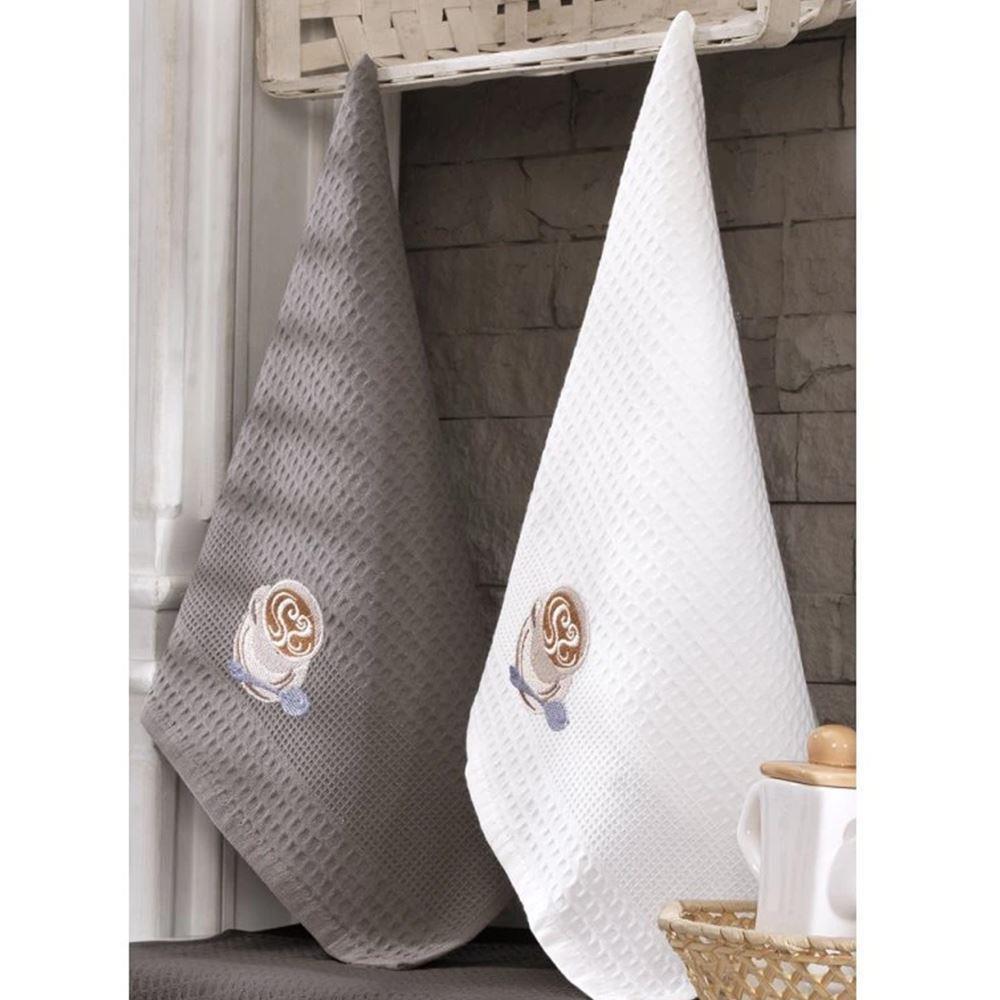 Vaflové utěrky představují stylový a praktický doplněk každé kuchyně. Tato dárková sada potěší všechny milovníky kávy. Utěrky jsou ušité ze 100% bavlny, což zaručuje skvělou savost i výjimečnou životnost. Vaflový vzor s dekorem kávových hrníčků a nápisy "coffee" dodává kuchyni moderní a elegantní vzhled.