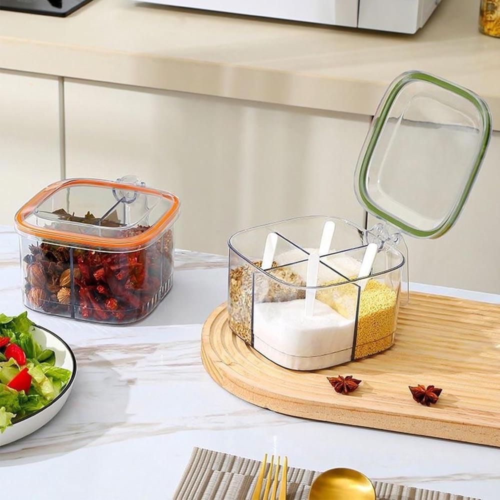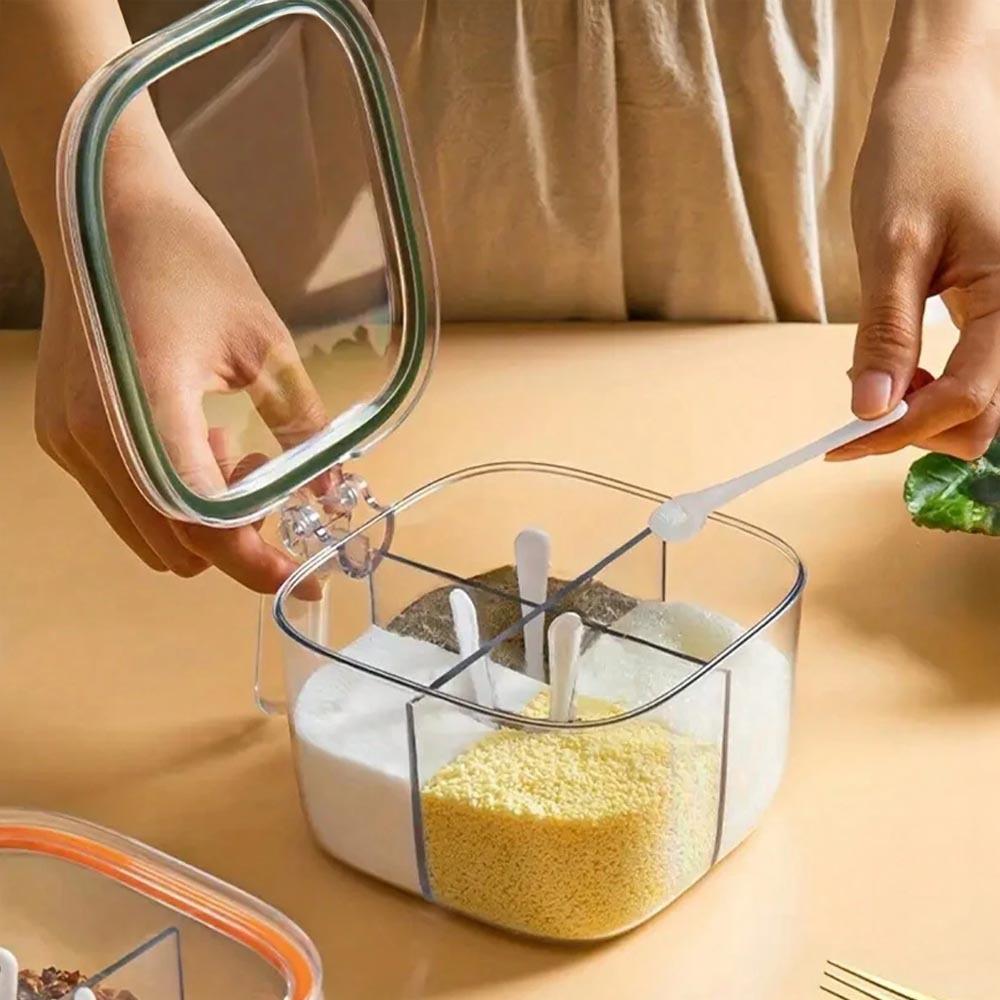 Obrázek z Dělená dóza s úchytkou - 4 přihrádky, 4 lžičky