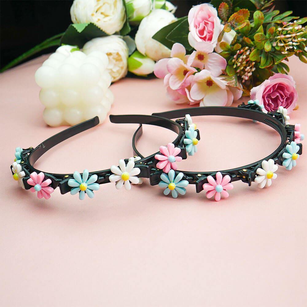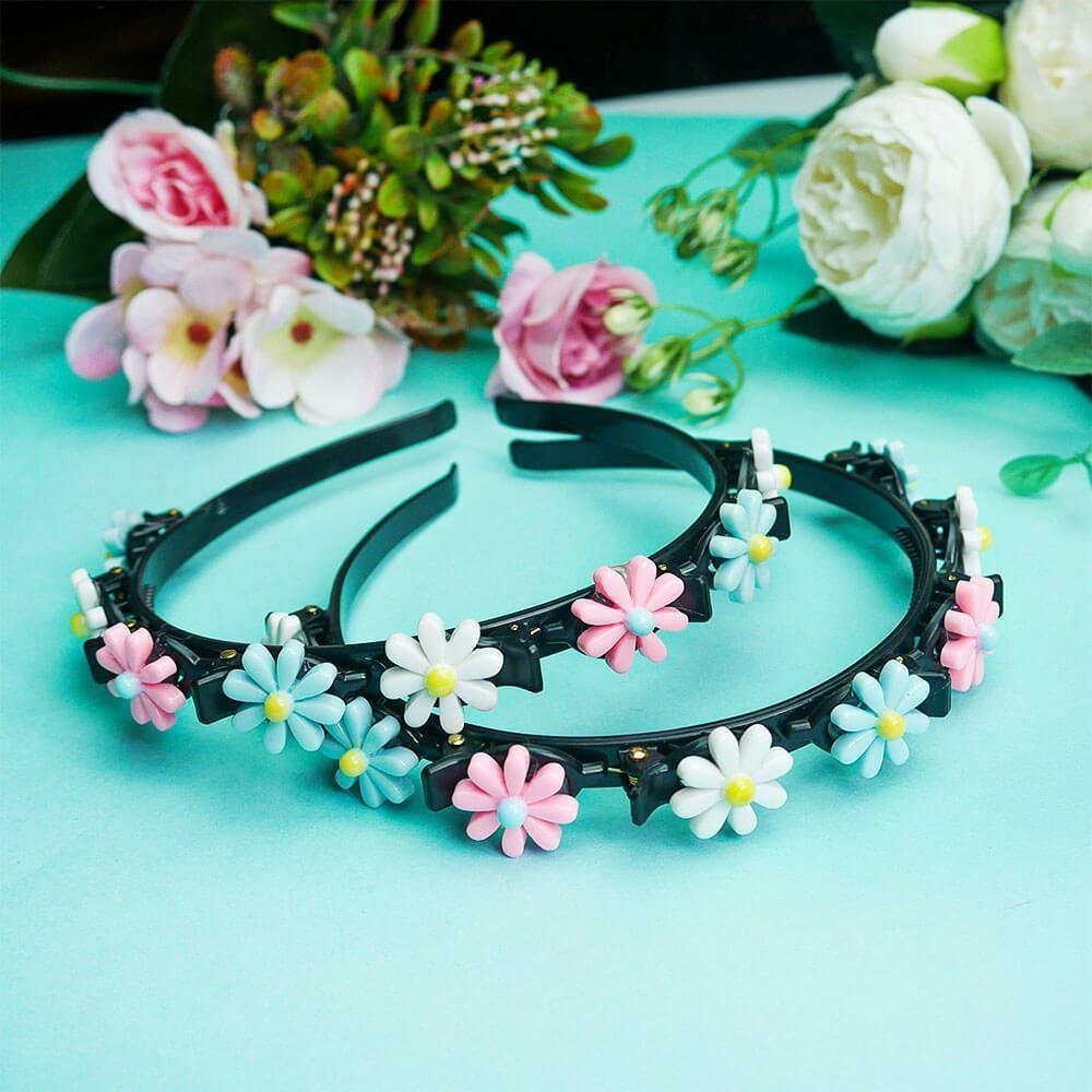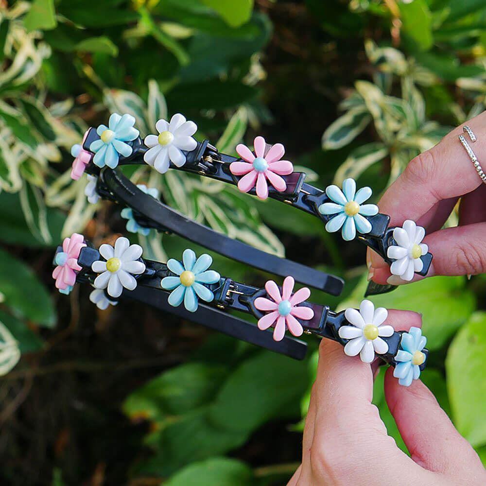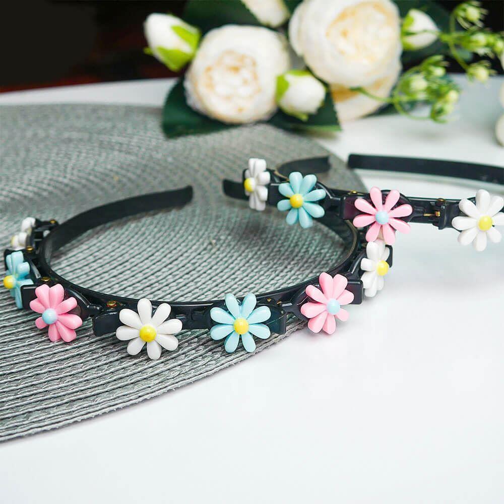 Barevná čelenka do vlasů s přidanými sponkami zamezí padání vlasů do obličeje a vytvoříte s ní nádherné účesy. Čelenku umístěte na temeno hlavy a sponkami přichytněte jednotlivé pramínky vlasů.Čelenka dokáže vytvořit větší objem a vlasy nebudou padat do očí, ale budou držet hezky na svém místě. Co je ale hlavní je její krásný design, který vykouzlí úsměv nejedné parádnici!