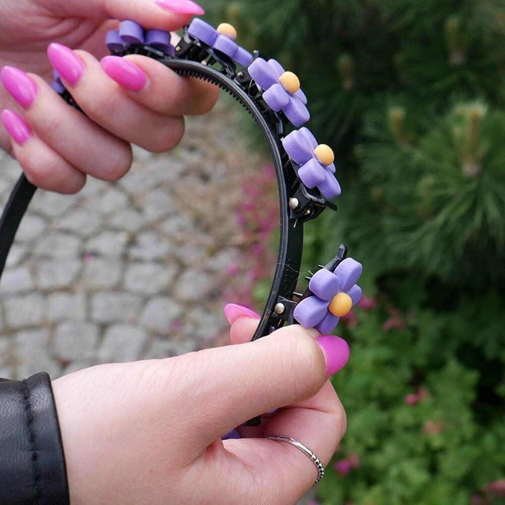 Barevná čelenka do vlasů s přidanými sponkami zamezí padání vlasů do obličeje a vytvoříte s ní nádherné účesy. Čelenku umístěte na temeno hlavy a sponkami přichytněte jednotlivé pramínky vlasů.Čelenka dokáže vytvořit větší objem a vlasy nebudou padat do očí, ale budou držet hezky na svém místě. Co je ale hlavní je její krásný design, který vykouzlí úsměv nejedné parádnici!