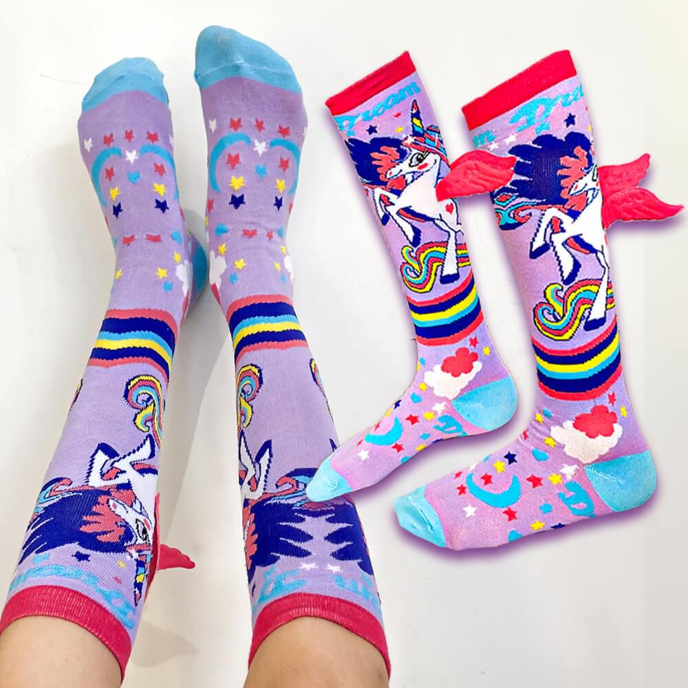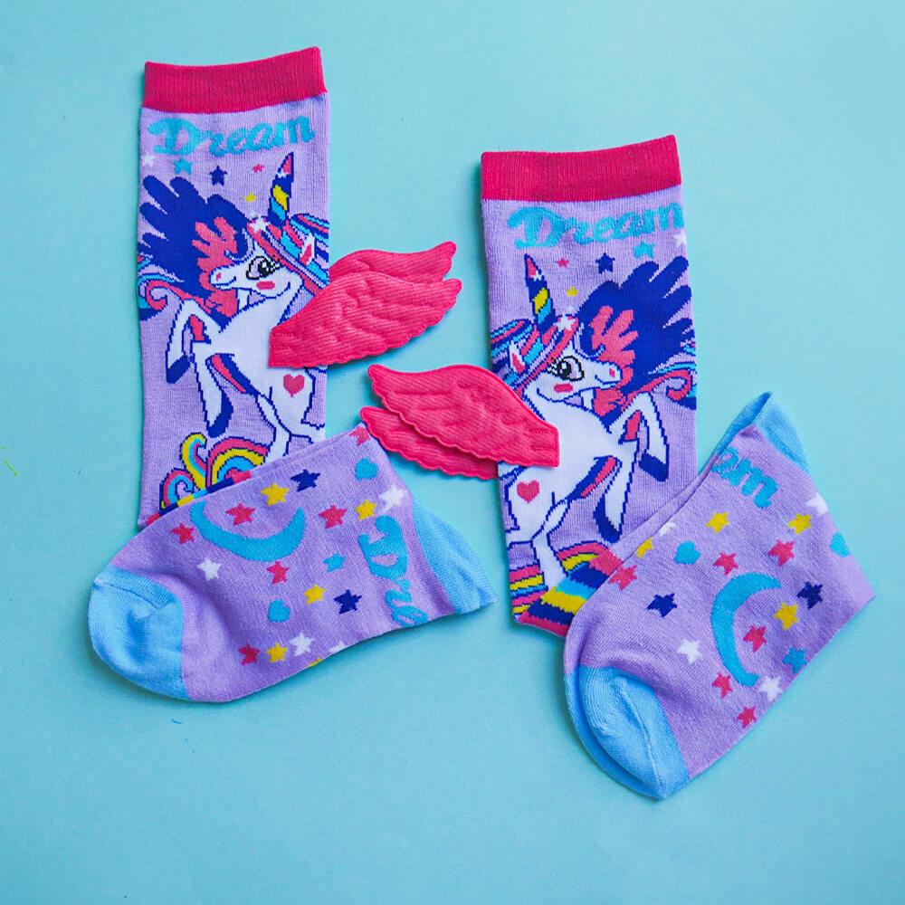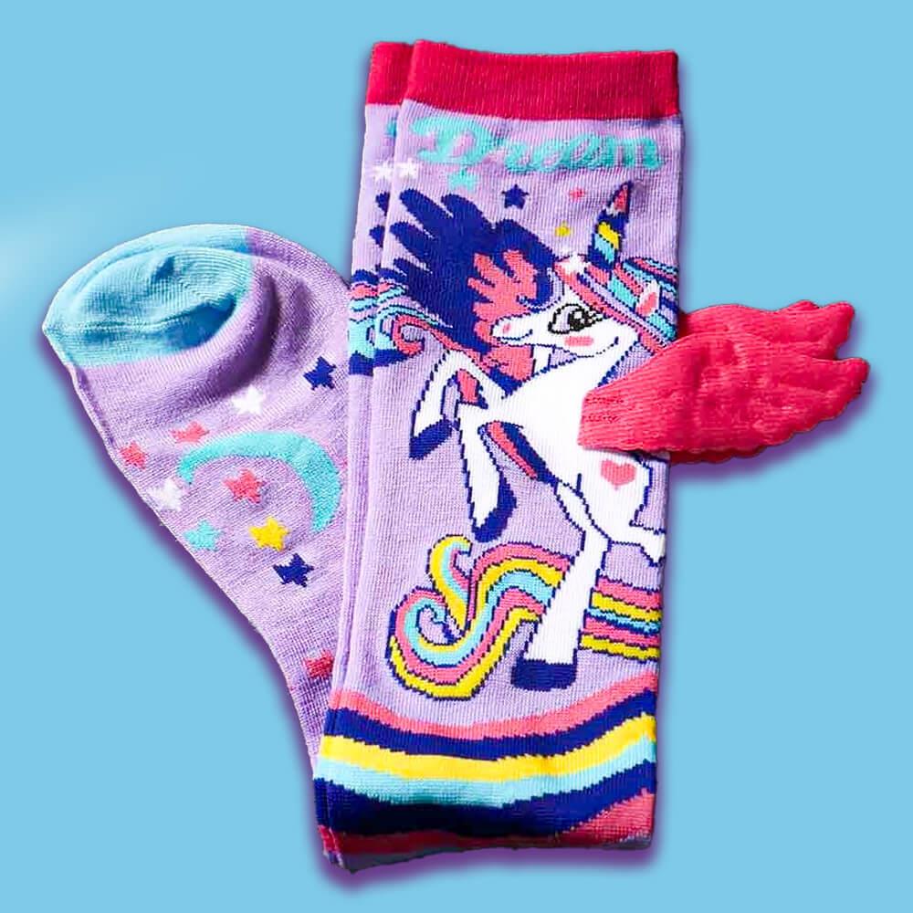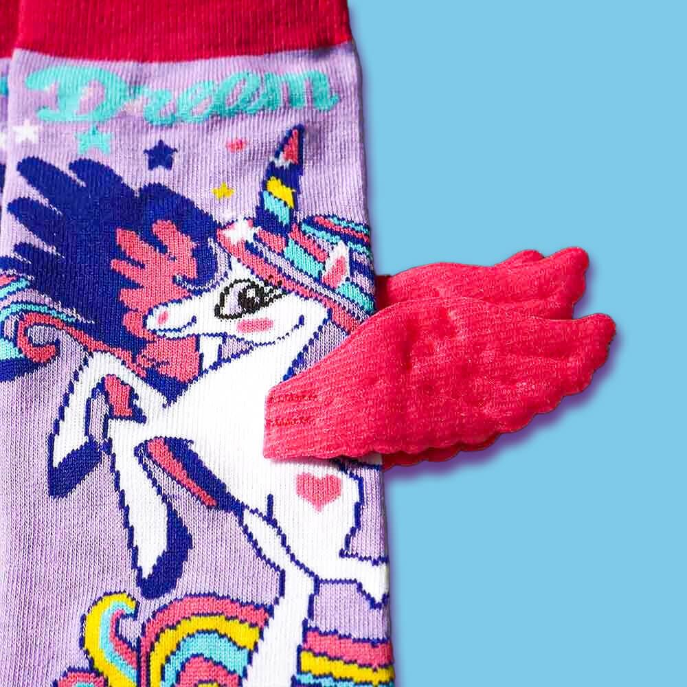 Ponožky s motivem jednorožce nejsou jen obyčejným kouskem oblečení, ale především zdrojem radosti a fantazie. Každé dítě si je zamiluje pro jejich výrazné barvy a roztomilá růžová křidélka, která opravdu vystupují z látky. Design podporuje hravost a pozitivní náladu, a to nejen u dětí, ale i u dospělých, kteří je uvidí. Ponožky skvěle sedí a příjemně se nosí.