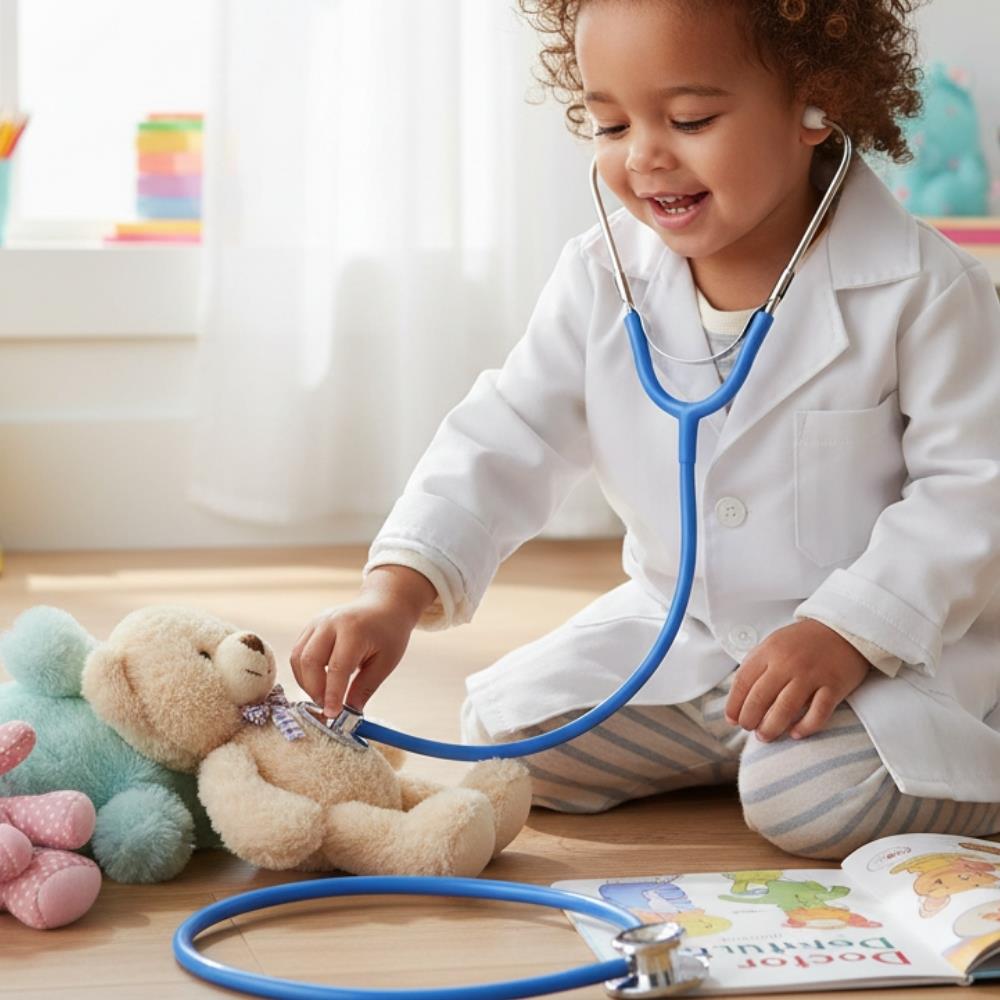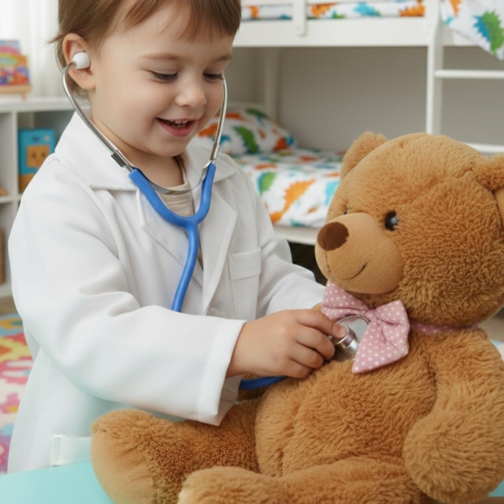 Probuďte v dětech zájem o zdraví pomocí hry. Ukažte si, jakým způsobem doktoři poslouchají jejich srdíčka a poslouchají jejich dech. Díky zábavné hře pak děti nebudou mít strach z návštěvy u doktora.