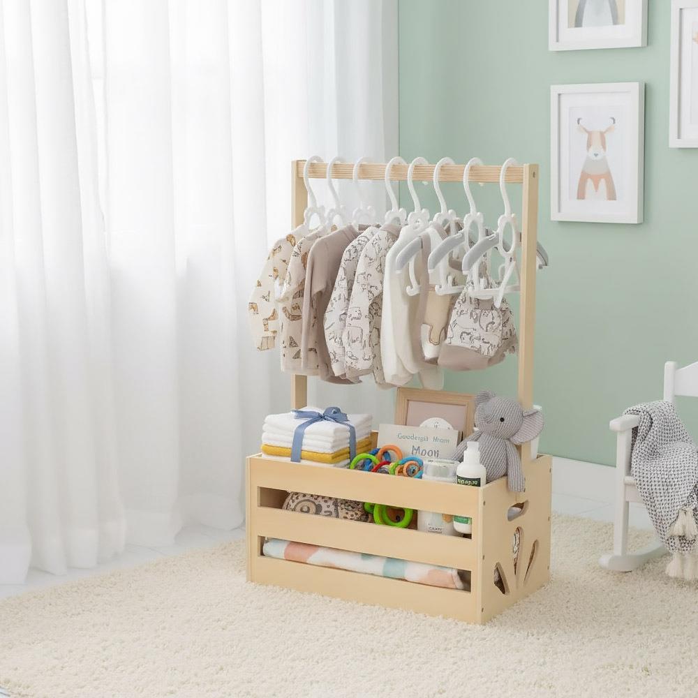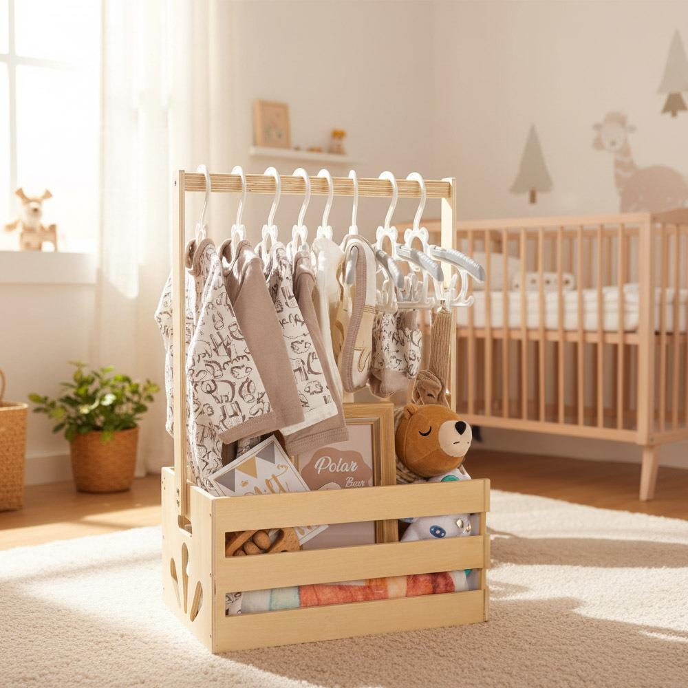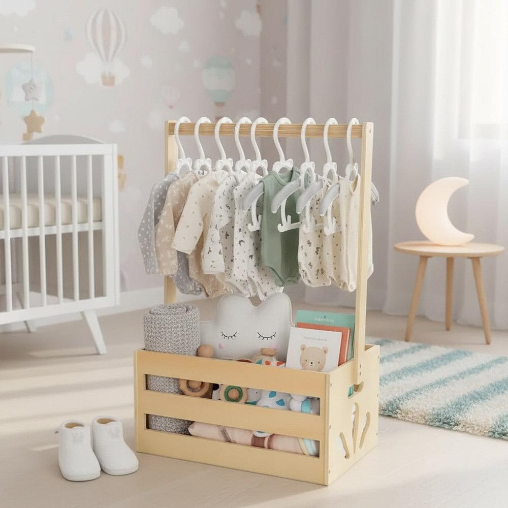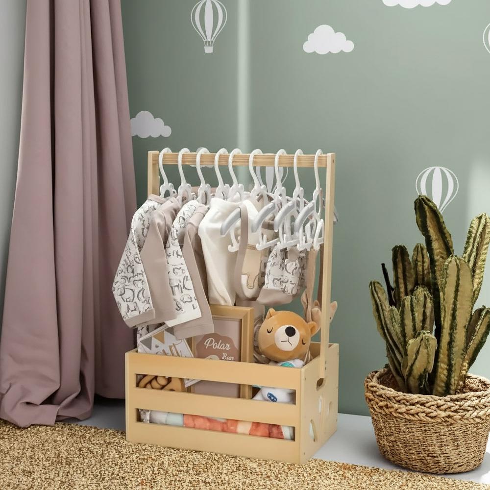 Stylový košík je ideální volbou pro všechny, kteří očekávají příchod miminka nebo hledají dokonalý dárek na baby shower. Nejprve jej naplňte užitečnými drobnostmi – ať už oblečením, plenami, nebo hračkami – a poté jej rodiče využijí jako dekorativní stojan na dětské oblečky. Díky otvorům po stranách lze košík snadno přenášet a velký úložný prostor se stane pomocníkem pro každodenní potřeby. Košíček z přírodního dřeva krásně doplní každý dětský pokojíček a stane se místem na vzpomínky i poklady těch nejmenších. Dlouhotrvající radost i stylový úložný prostor v jednom!