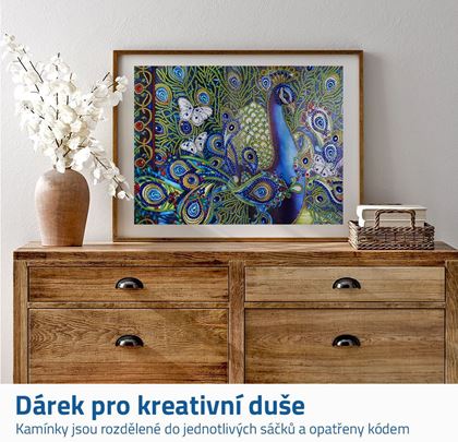 Pokud si libujete v uměleckém tvoření, máme pro vás senzační tip na další umění k vám do sbírky. Diamantové malování bude pro vás i jistou výzvou, jelikož aplikování kamínků je o trpělivosti a pečlivosti. Výsledný obraz pak stojí za to!Kamínky jsou rozdělené do sáčků a opatřeny kódem. Plátno zase obsahuje legendu právě s kódy, ke kterým jsou přirazeny kamínky. Plátno má na sobě má písmena a číslice, na které se aplikují kulaté kamínky. Hotový obraz můžete zarámovat a vyvěsit u vás doma. Umělecké dílo tak bude sloužit jako bytová dekorace.