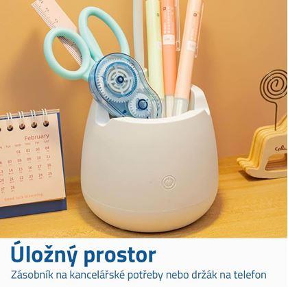 Dotyková lampička se zásobníkem na drobné nezbytnosti fungujícím rovněž jako stojan na telefon je totiž přesně to, co potřebujete. Postavíte ji kamkoli, jelikož je dobíjecí a nelimituje vás tedy tím, kde je zrovna zásuvka; ovládá se pouhým dotykem a svítí podle toho, v jaké části dne se zrovna nacházíte