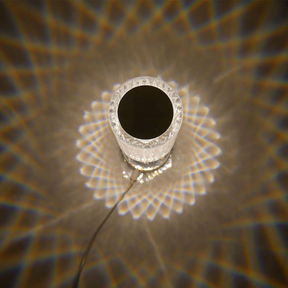 Elegantní lampička promítající ornamenty, která vypadá jako křišťálová. Takovou aspoň jednu doma prostě potřebujete mít! Po rozsvícení vám okamžitě vykouzlí romantickou a příjemnou atmosféru. Je vhodná do ložnice, ale i obývacího pokoje na stůl nebo malý noční stolek. Lampičkou vykouzlíte úsměv na tváři nejenom svojí přítelkyni, ale i mamince, kamarádce nebo sestře. Na lampičku stačí poklepat a tím se rozsvítí. V balení je USB kabel, nezbytný pro funkčnost lampy.