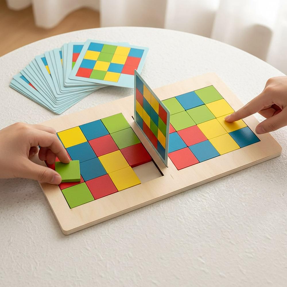 Hra pro dva - kdo jako první dokončí puzzle podle předlohy? Sada obsahuje dřevěné destičky s různými vzory k poskládání Rozvíjí logické myšlení, prostorovou představivost a reflexy Unikátní varianta Rubikovy kostky Ideální pro výzvy mezi přáteli nebo při rodinných setkáních