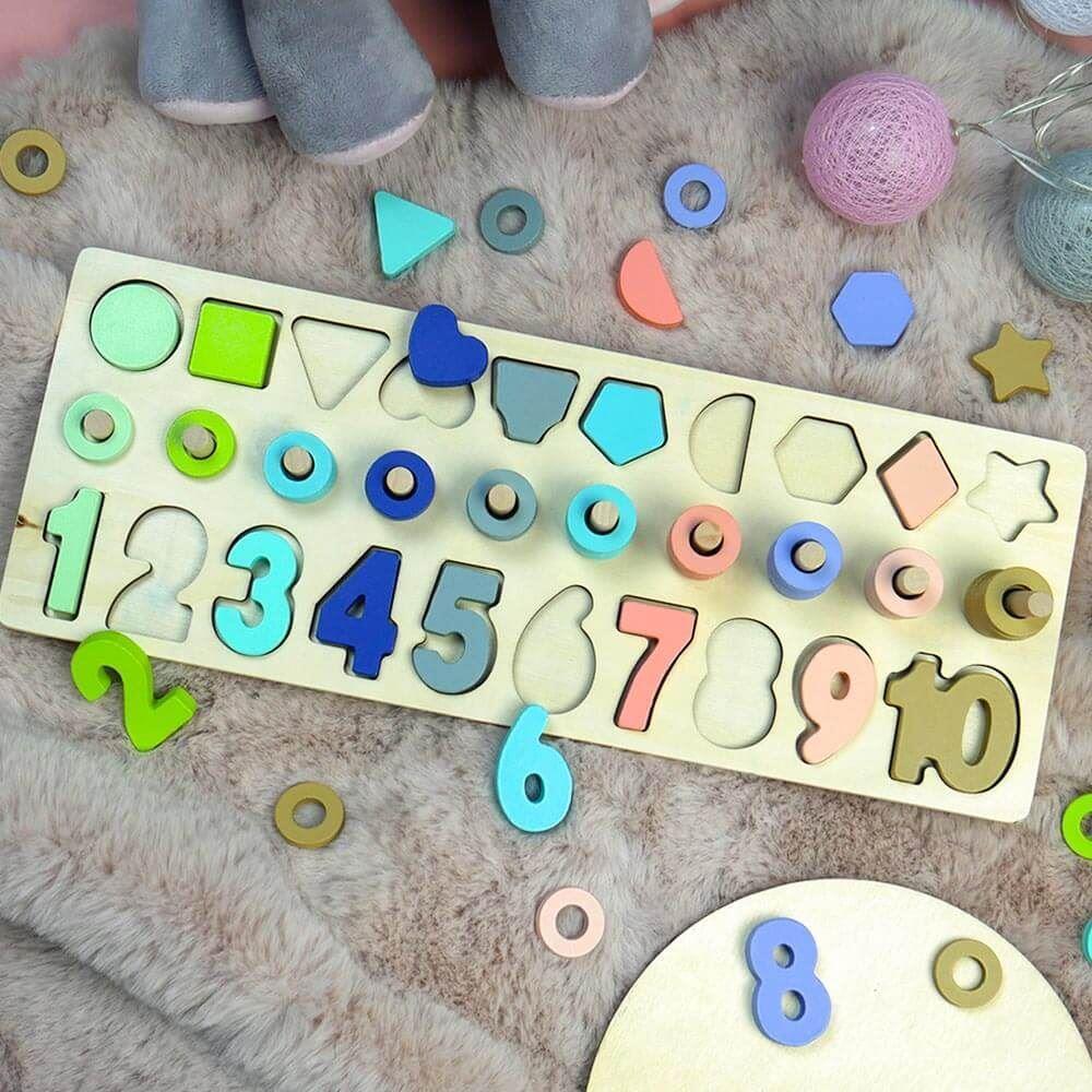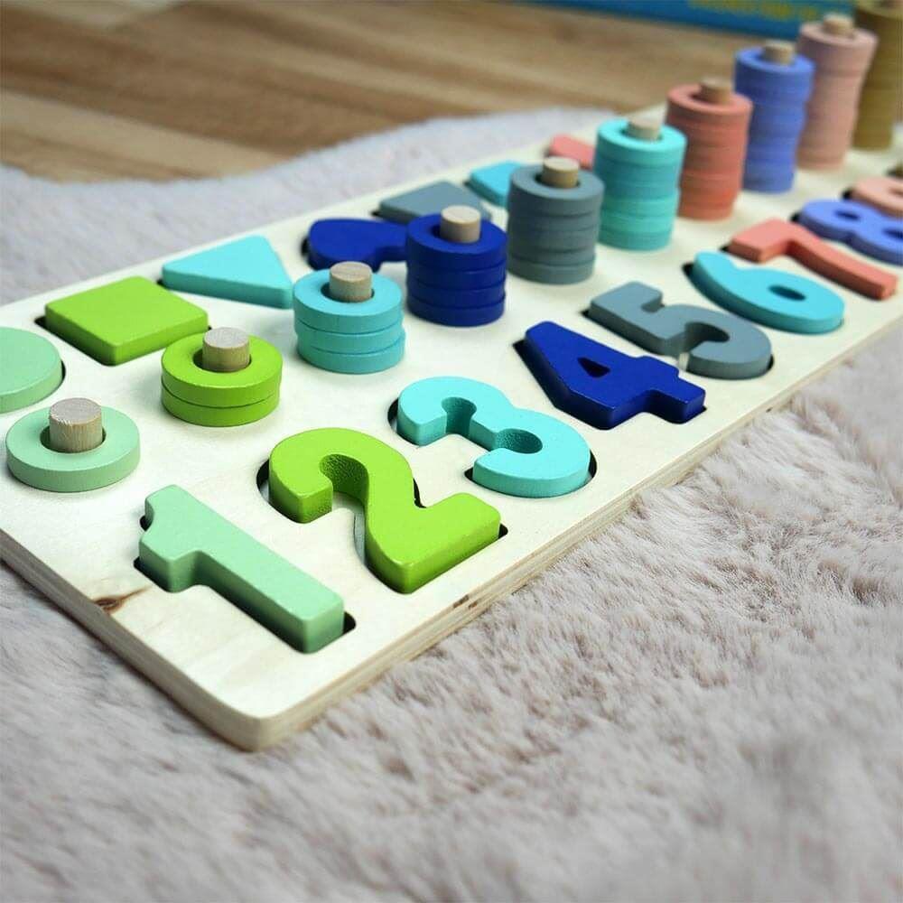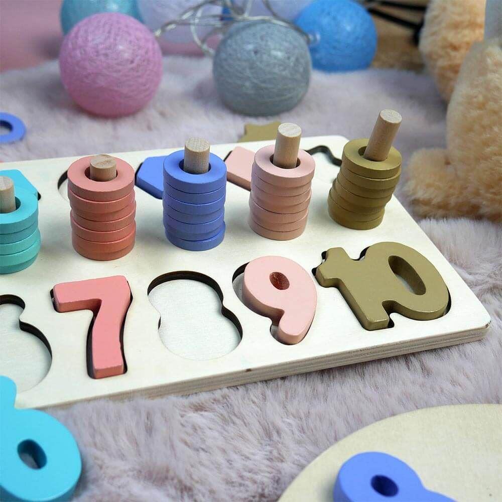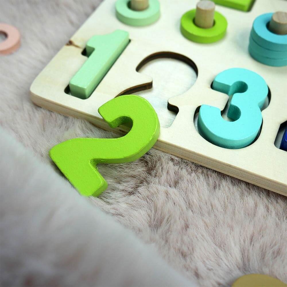 Pak mohou děti vkládat tvary a číslice a příslušné množství kroužků na každý kolíček. Barvy kroužků mohou ale nemusí odpovídat barvám číslic, hlavní je jejich správný počet. Takovéto učení se určitě setká s úspěchem.