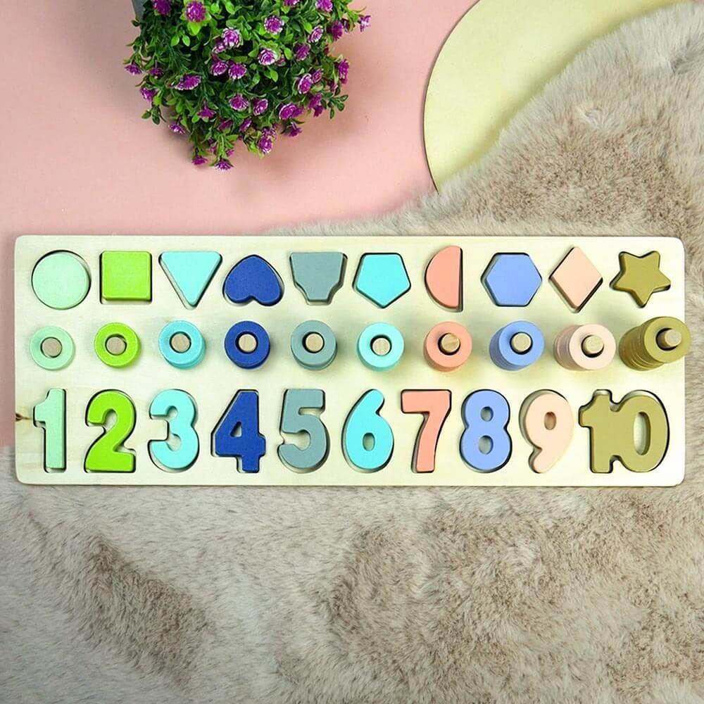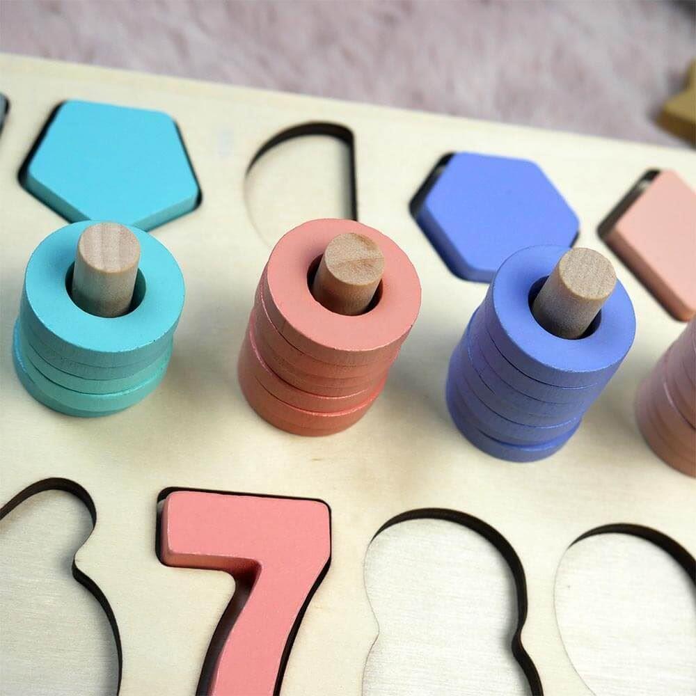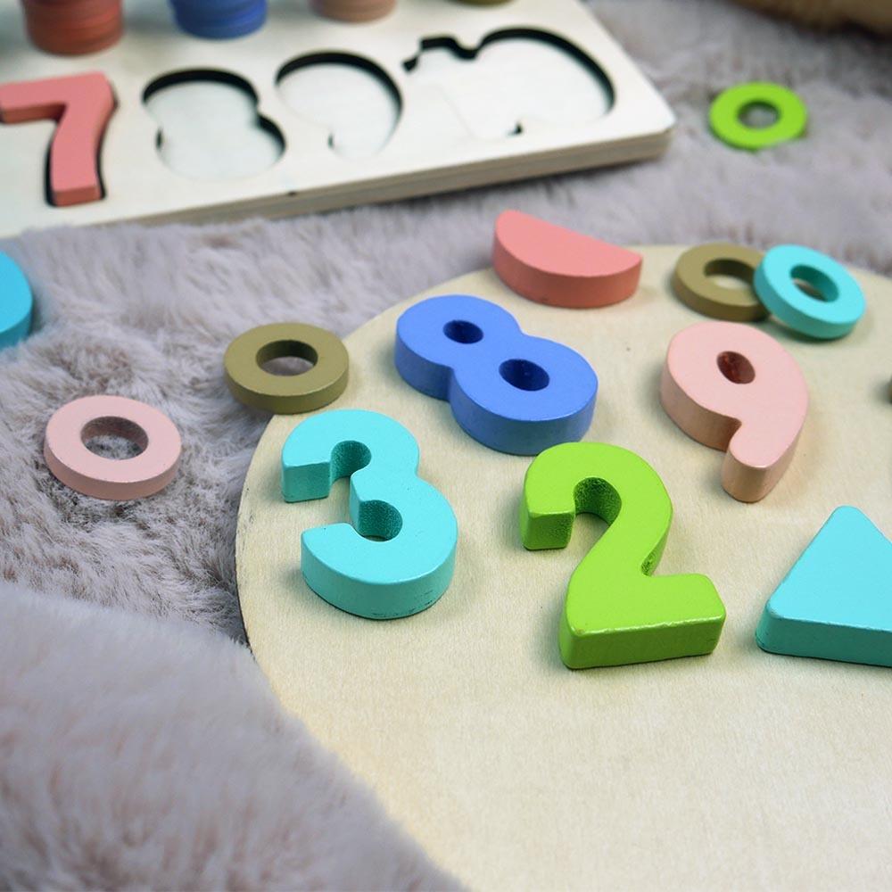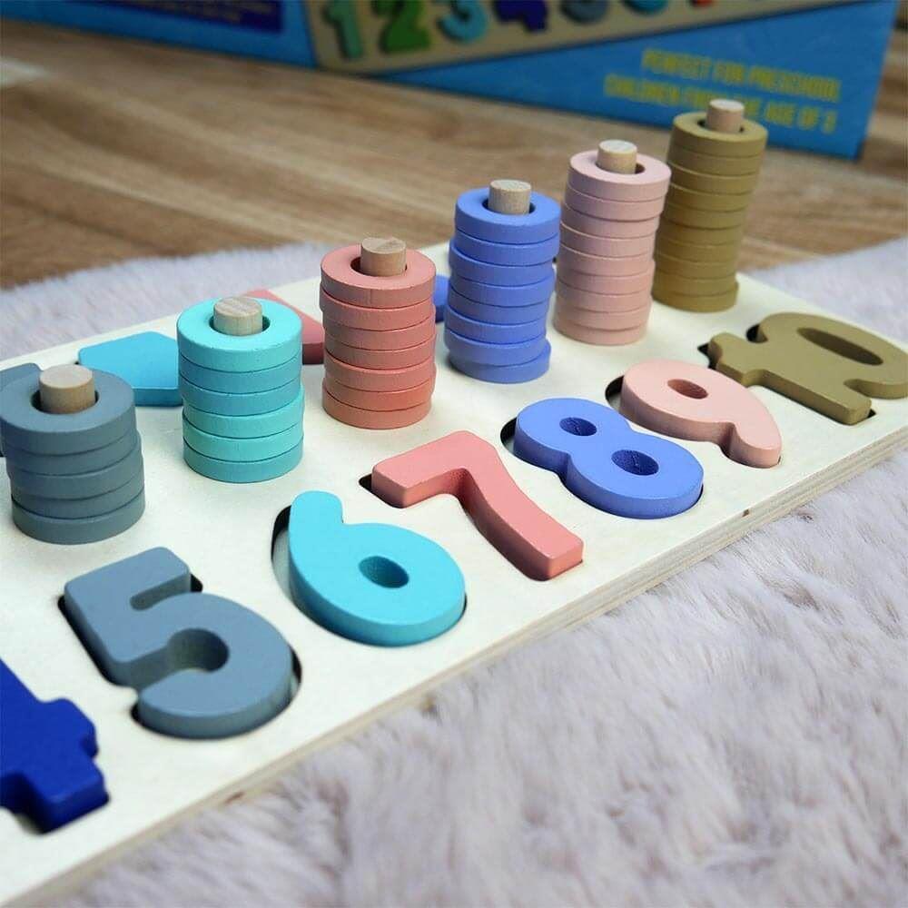 Pak mohou děti vkládat tvary a číslice a příslušné množství kroužků na každý kolíček. Barvy kroužků mohou ale nemusí odpovídat barvám číslic, hlavní je jejich správný počet. Takovéto učení se určitě setká s úspěchem.