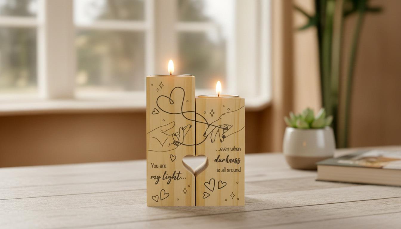 Dřevěné svícny pro páry symbolizují spojení dvou lidí a jejich společný příběh. Jsou krásným dárkem, který po zapálení svíčky vytvoří hřejivou atmosféru plnou emocí.