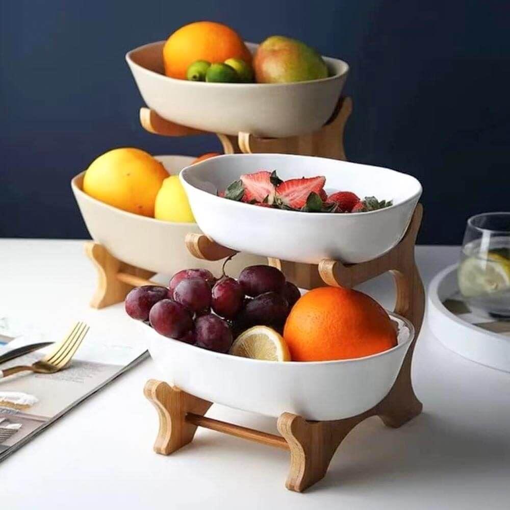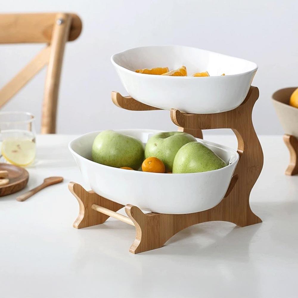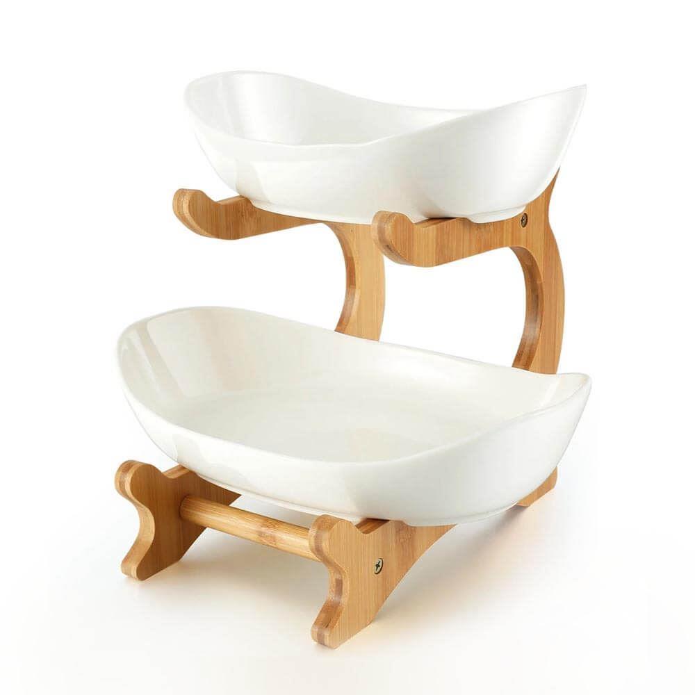 Dvoupatrový stojan využijete na uskladnění i servírování potravin. Hodí se na ovoce, pečivo, ořechy či jiné pochutiny. Díky modernímu designu bude vypadat skvěle v každém interiéru. Využijete jej v kuchyni, na jídelním stole, ale i k servírování pochutin na oslavách.
