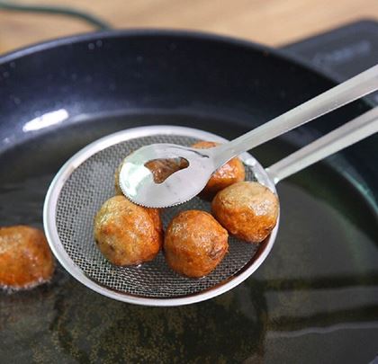 S těmito kleštěmi lehce a bezpečně naberete pokrmy z horkého oleje. Po uchopení obrátíte, necháte odkapat a přemístíte.