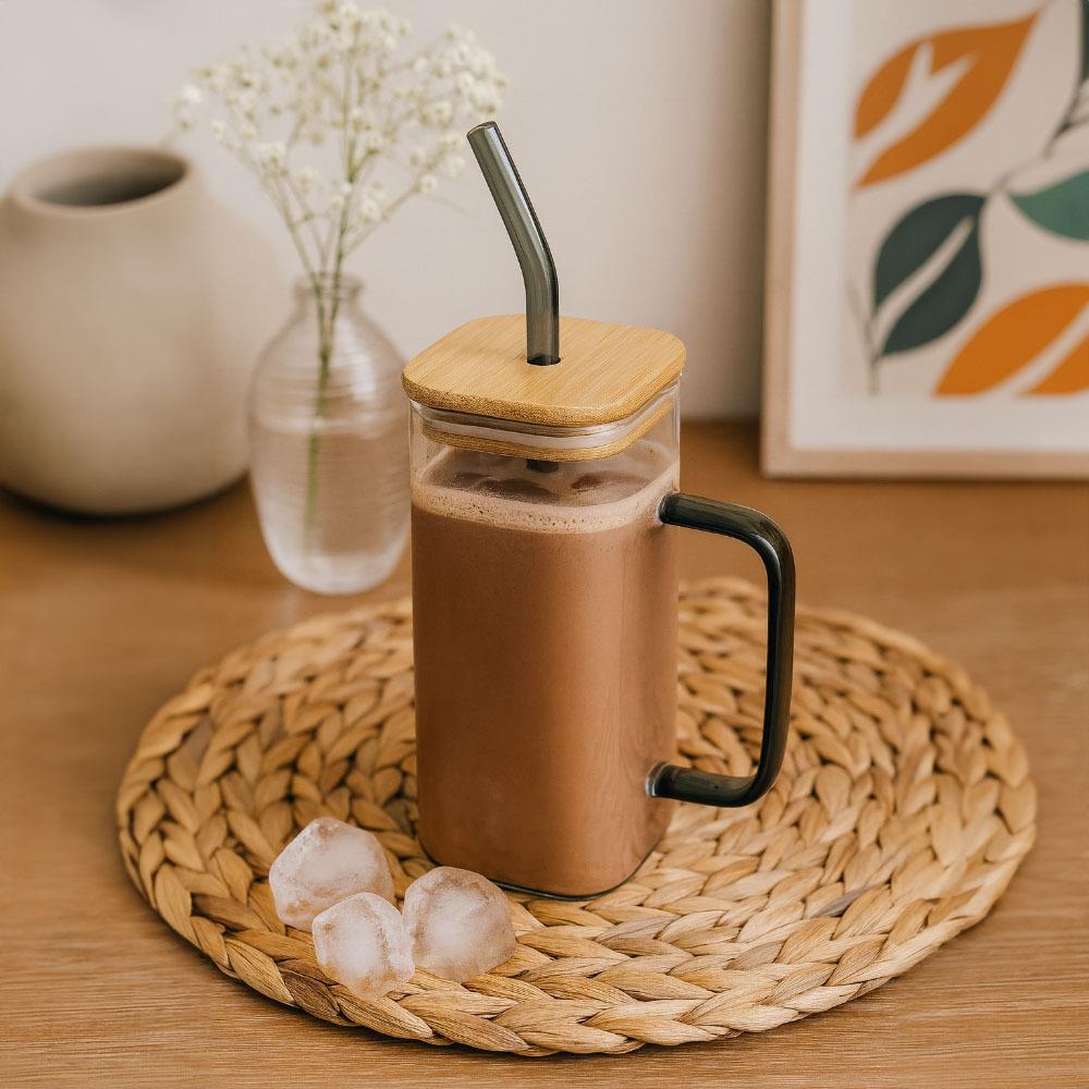 Stylová sklenice s víčkem, uchem a brčkem je ideální pro každodenní použití. Udrží vaše oblíbené nápoje v bezpečí před rozlitím i hmyzem a zajistí pohodlné pití doma, v práci i na cestách. Skvělý parťák pro pitný režim po celý den!