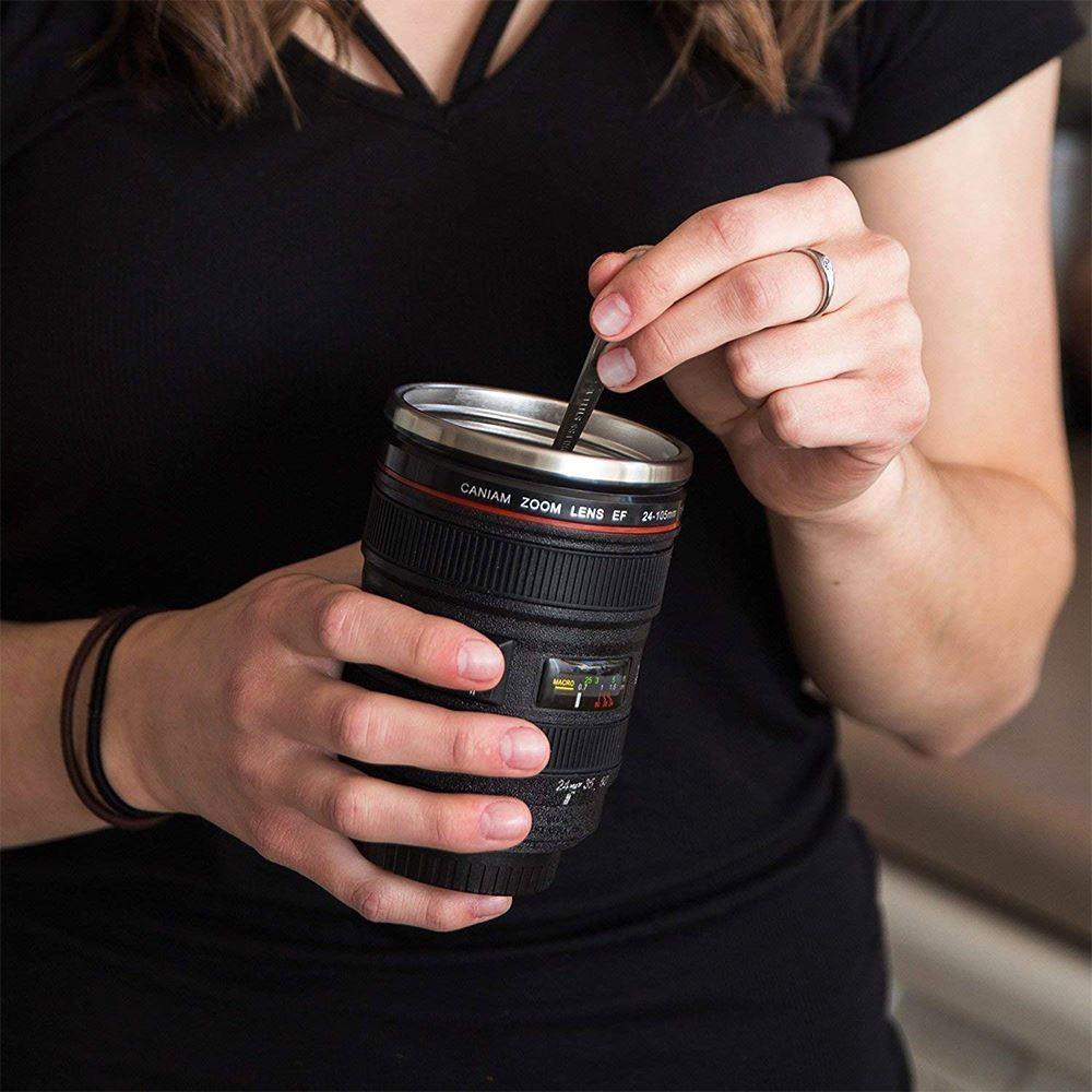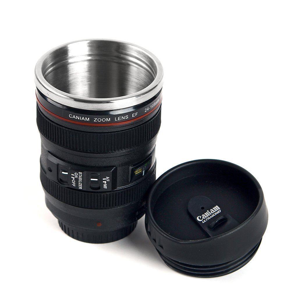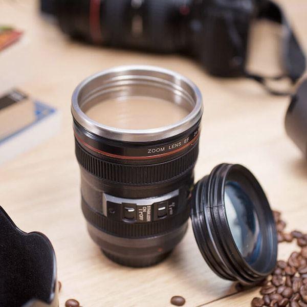 Stylový hrnek ve tvaru objektivu fotoaparátu potěší každého milovníka focení – ať už jde o profesionála, nadšeného amatéra nebo prostě jen fanouška netradičních doplňků. Hrnek je vybaven praktickým šroubovacím víčkem, díky kterému se nemusíte bát vylití nápoje, a je tak ideální jak do kanceláře, tak i na cesty.