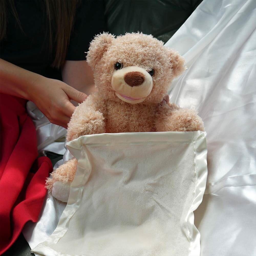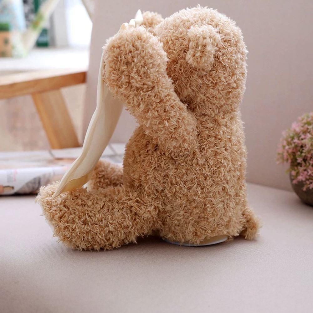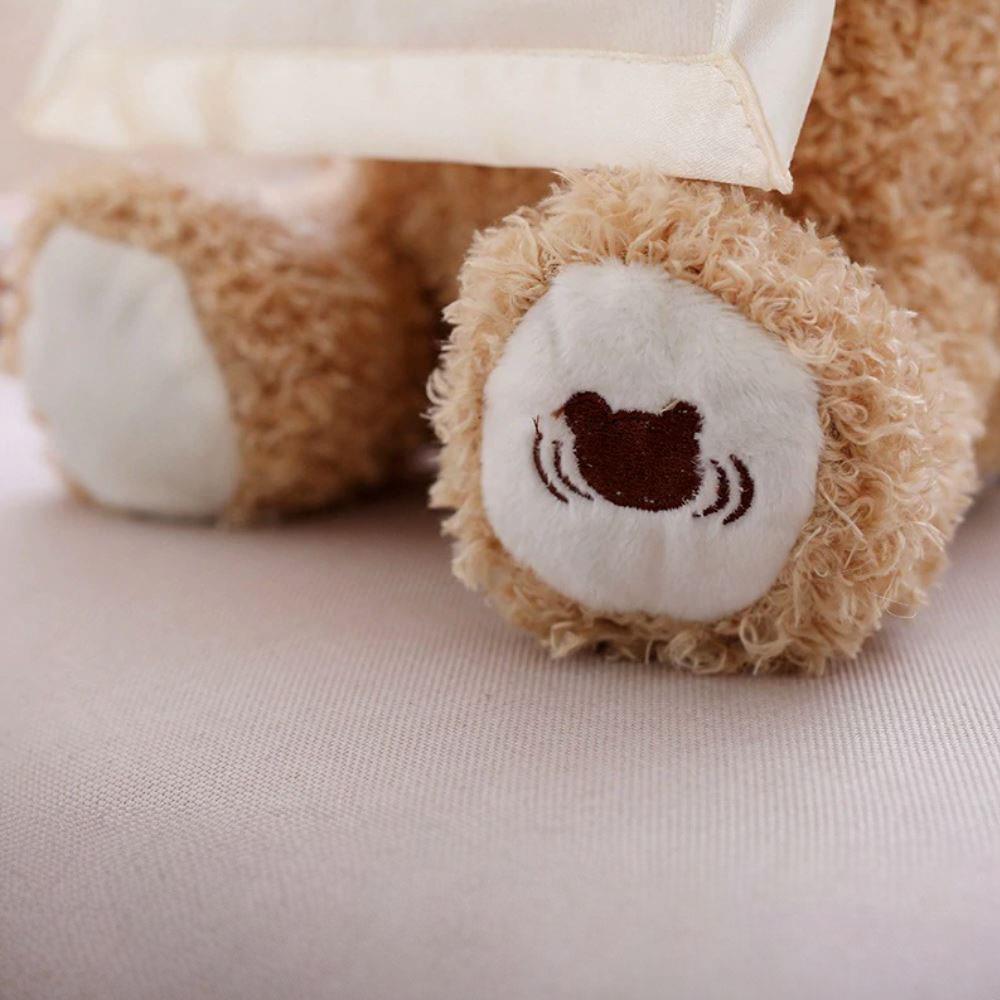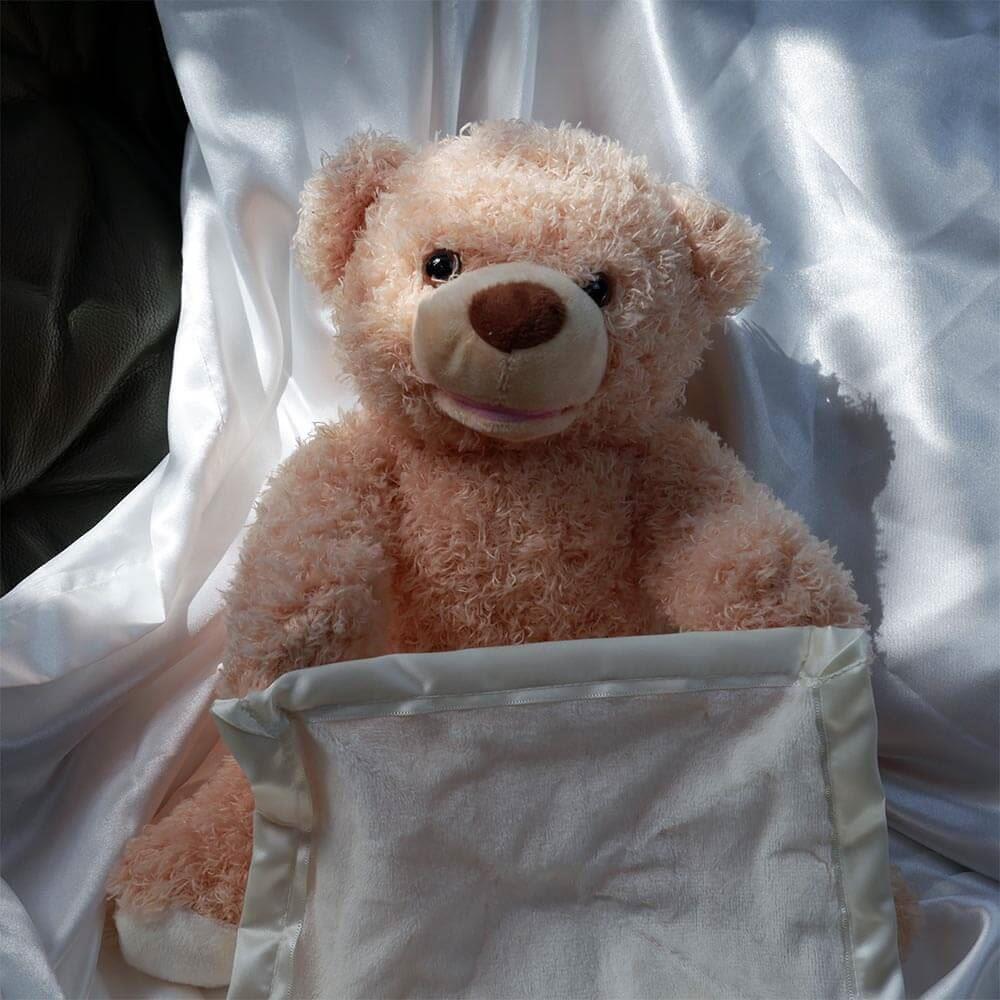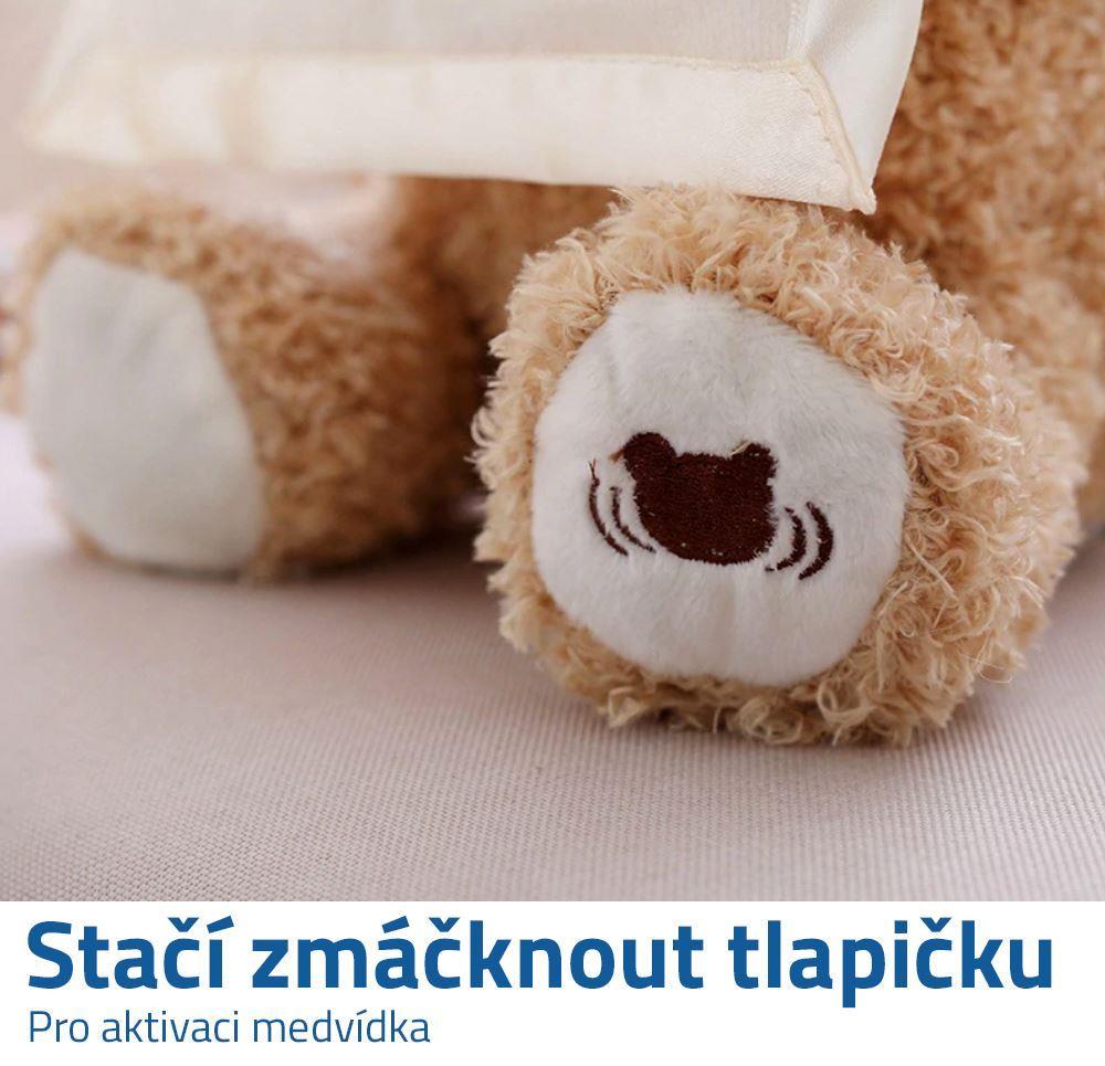 Méďa mluví v anglickém jazyce, v překladu říká například fráze: „Kdepak jsi? Našel jsem tě!“ Medvídkovi stačí zmáčknout tlapičku s obrázkem a přepnout spínač na spodní straně.