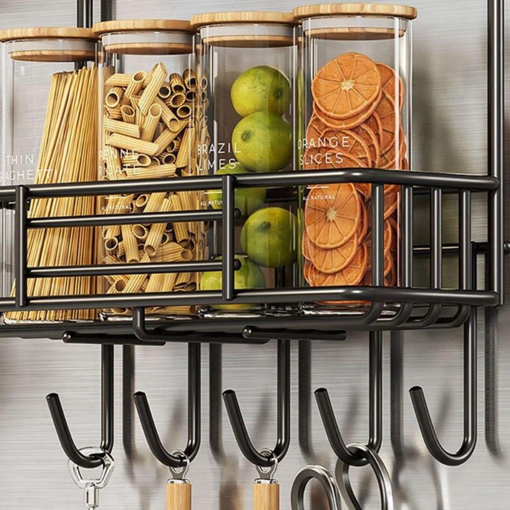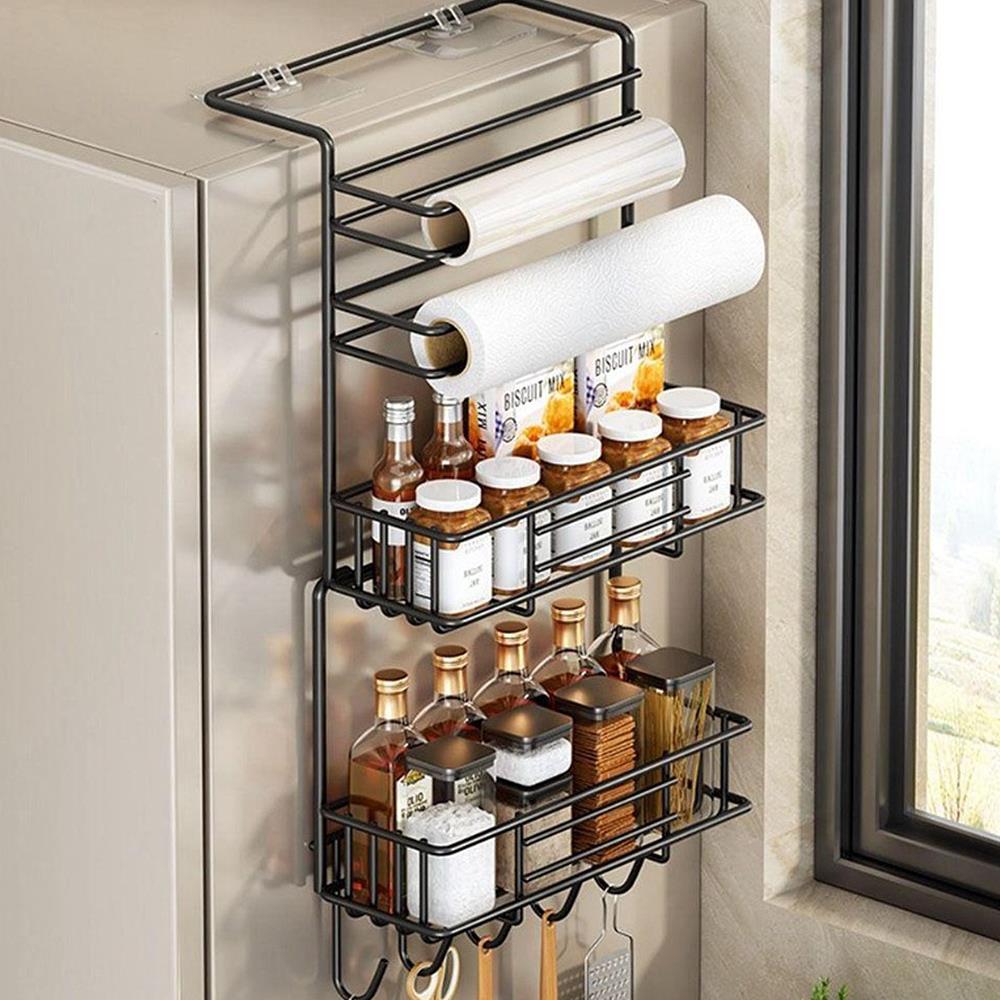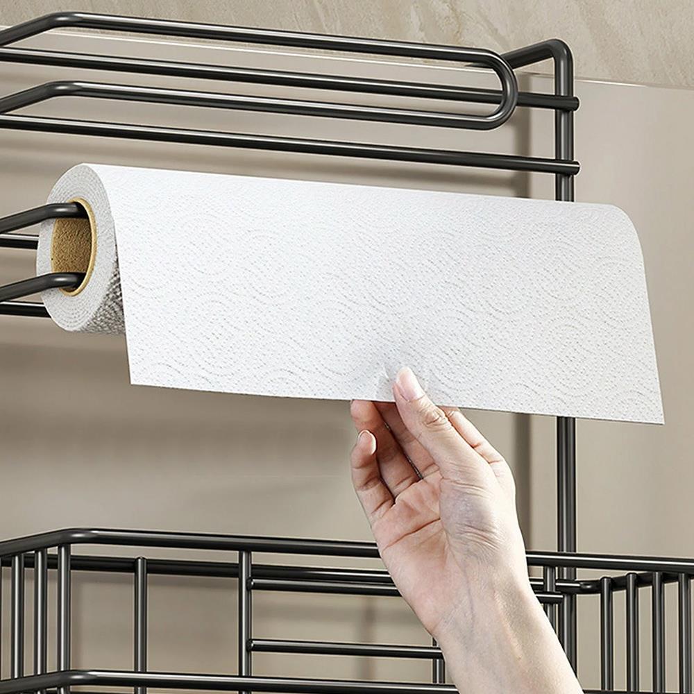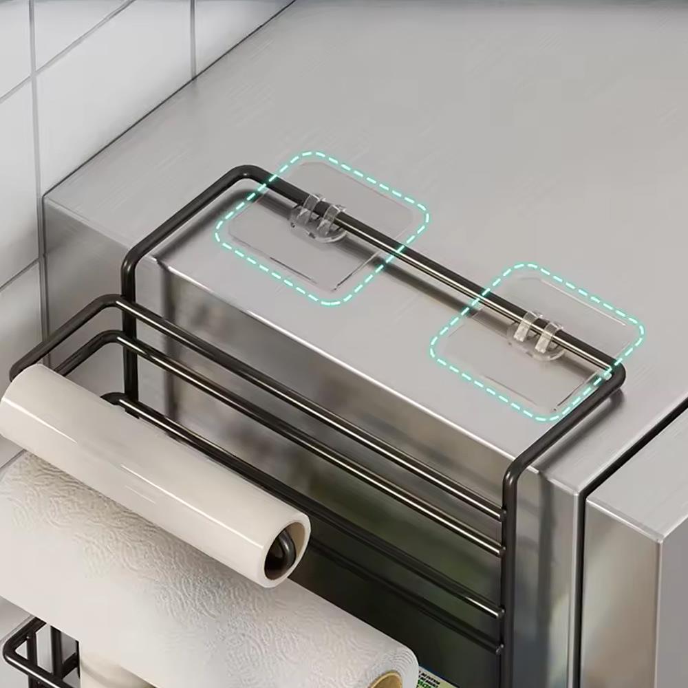 Černý kovový organizér vás překvapí nejen svým elegantním vzhledem, ale hlavně svou praktičností. Montáž pomocí samolepicích úchytů je velmi jednoduchá. Stačí očistit plochu, nalepit držáky, zavěsit organizér a během chvilky je připravený k použití. Organizér nabízí dvě úložné police, držáky na papírové utěrky a praktické háčky pro kuchyňské náčiní.