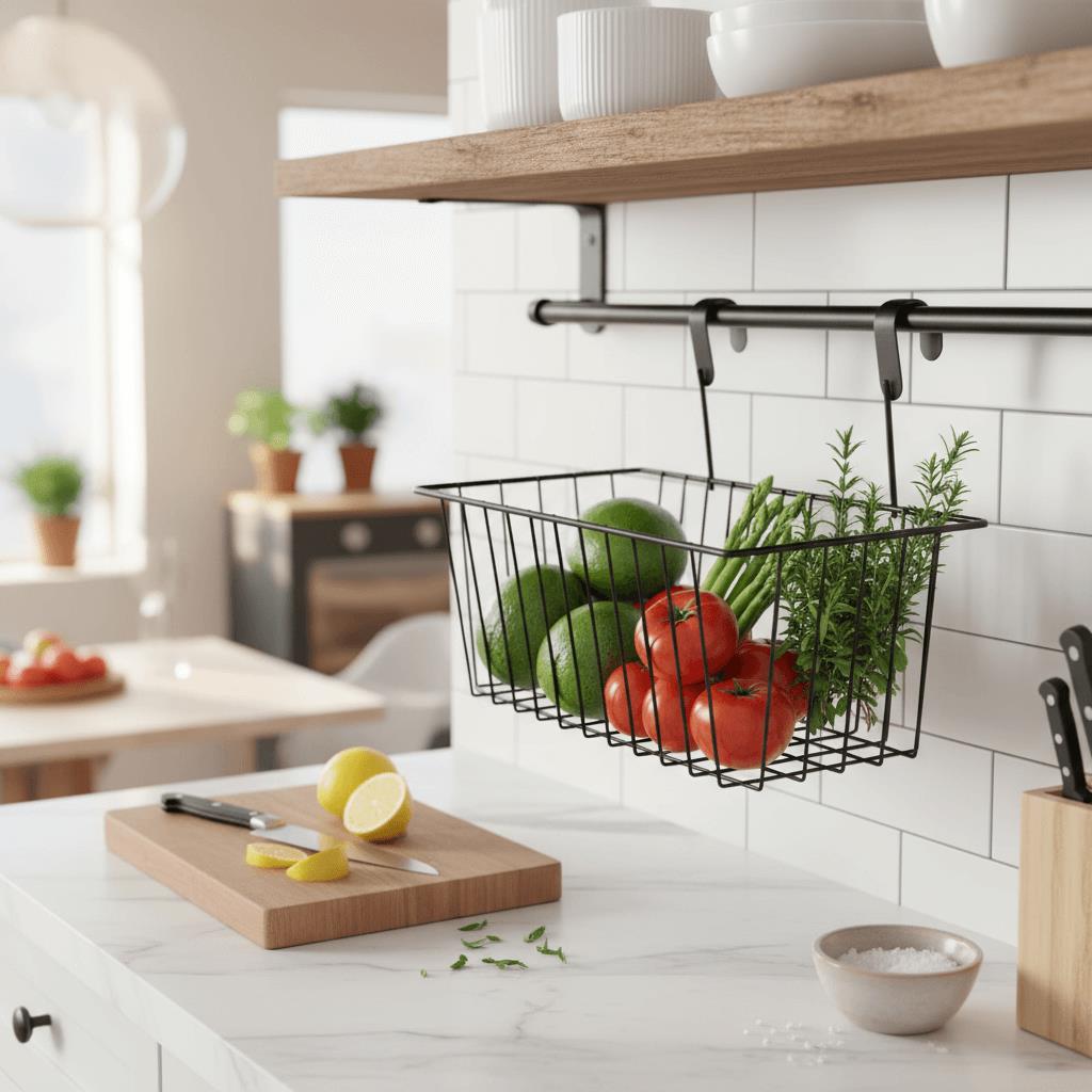 Užitečný parťák do domácnosti, který vám ušetří místo v kuchyni, koupelně nebo obýváku. Je vyrobený z kovu a má jednoduchý a nenápadný design.