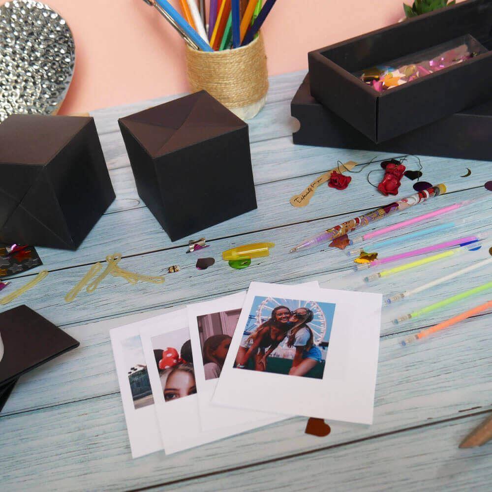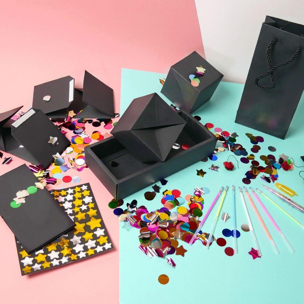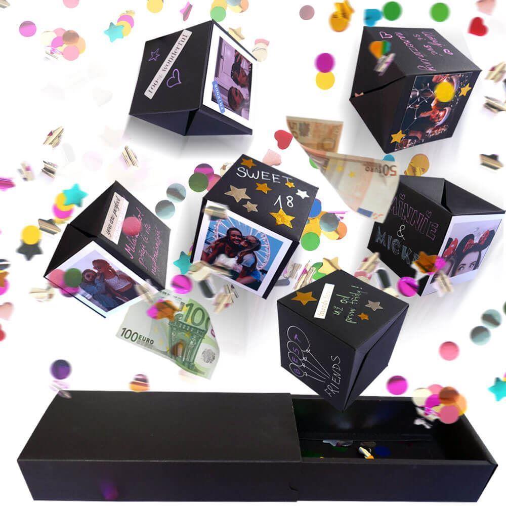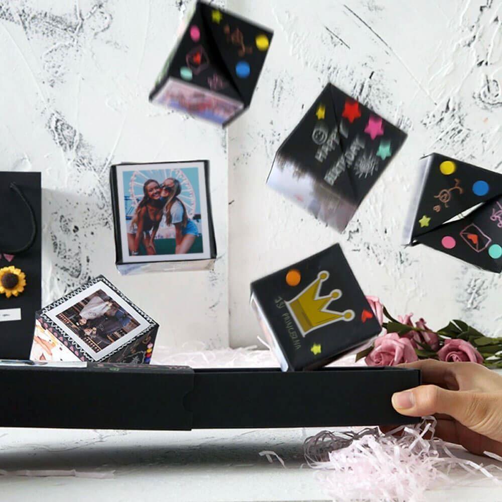 Hledáte způsob, jak udělat dárek opravdu nezapomenutelným? Tato originální explodující krabička promění obyčejný dárek v okamžik plný překvapení a radosti. Po otevření se z velké krabičky vysune několik menších krychlí, které můžete individuálně ozdobit – fotografie, vzkazy, samolepky nebo malované motivy udělají z každé krychle malý osobní poklad.