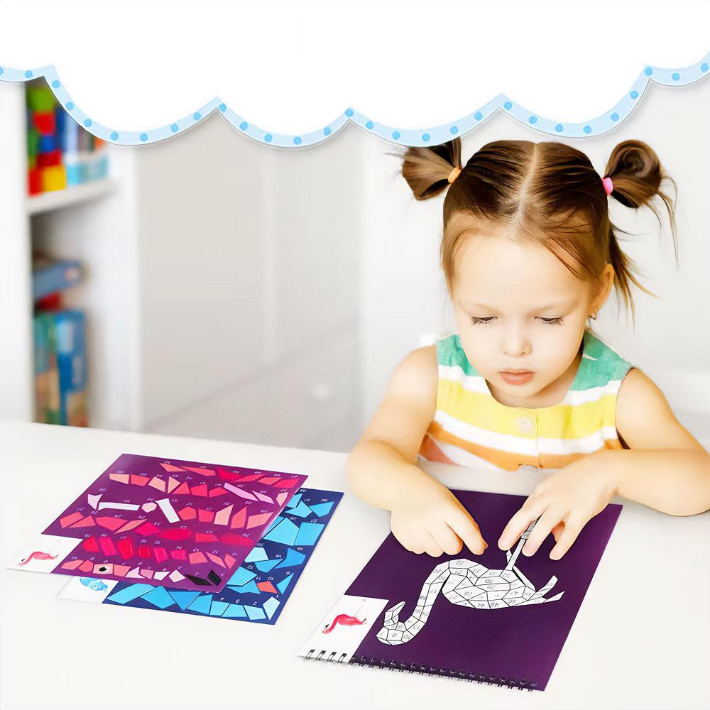 Kreativní sada lepení podle čísel rozvíjí trpělivost a přesnost dětí. Díky očíslovaným samolepkám snadno vytvoří krásné mozaikové obrázky doma i na cestách.