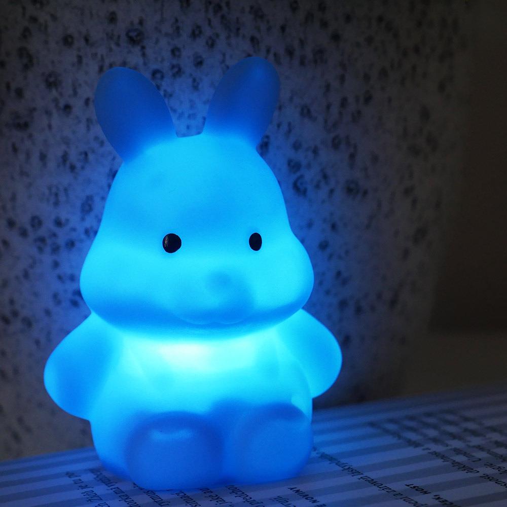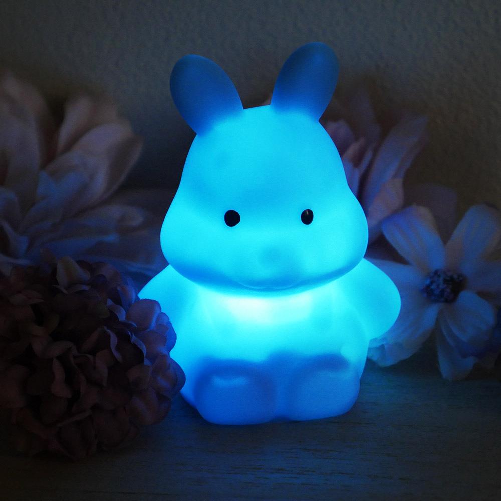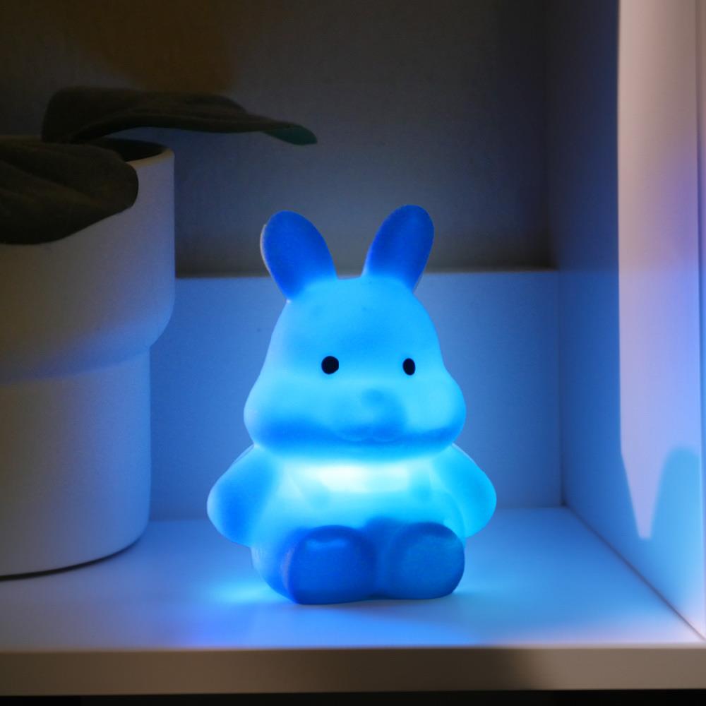 Králíček se snadno ovládá pomocí tlačítek ON/OFF a může svítit různými barvami podle potřeby.