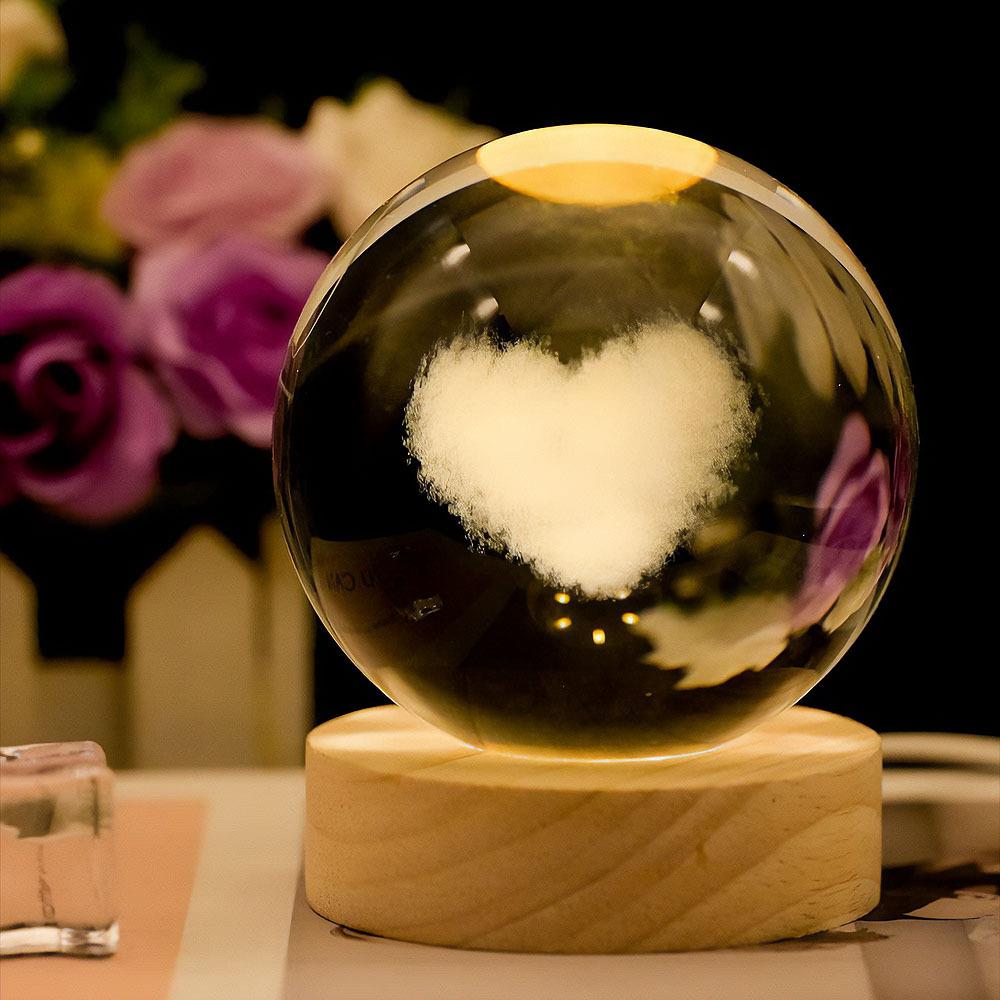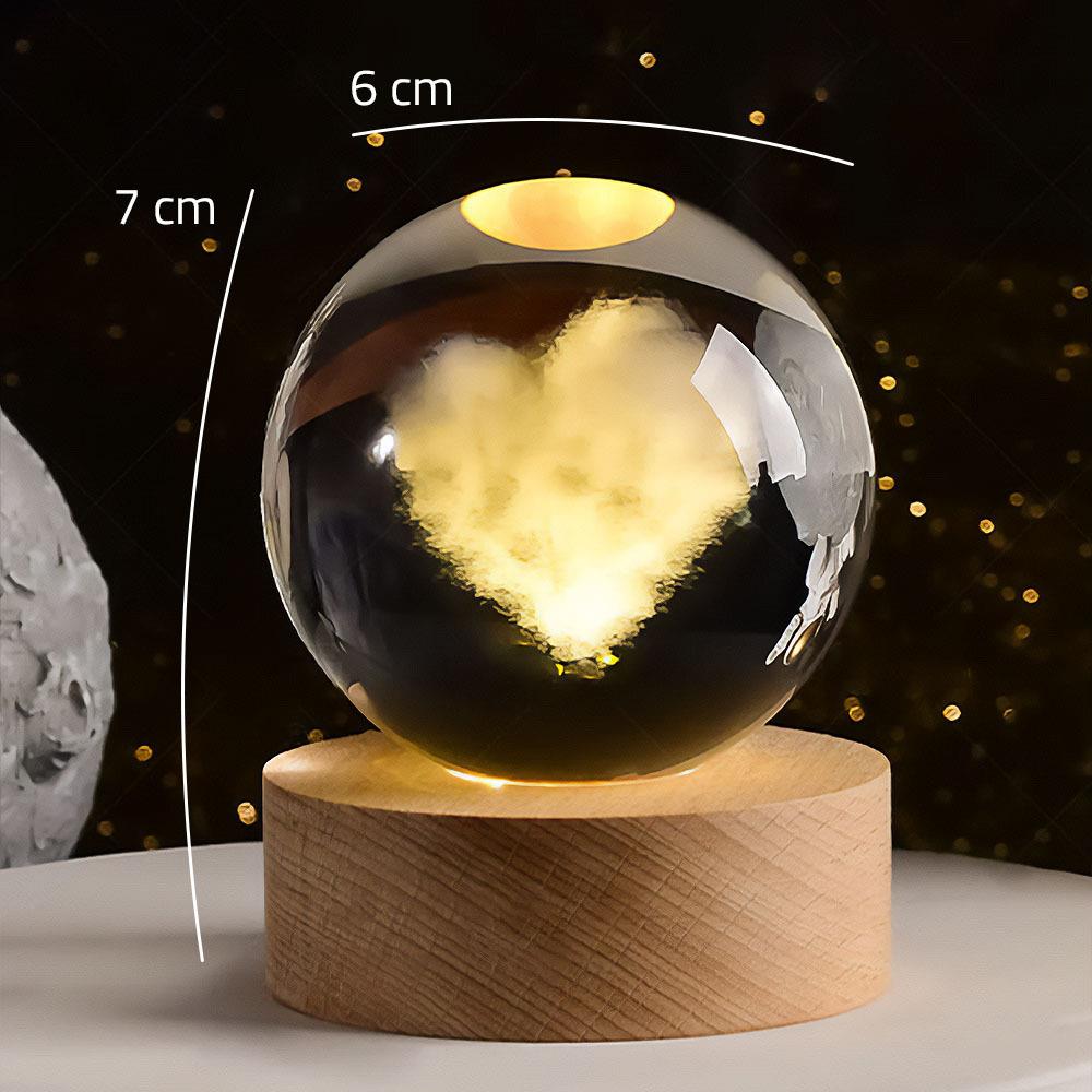 Elegantní skleněná koule s jemným LED podsvícením vytvoří útulnou atmosféru kdekoliv. Díky USB napájení a kompaktní velikosti je ideální dekorací i drobným romantickým dárkem.
