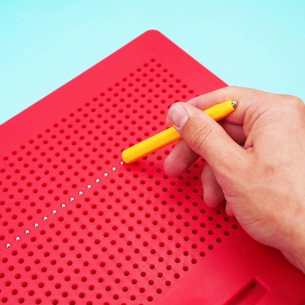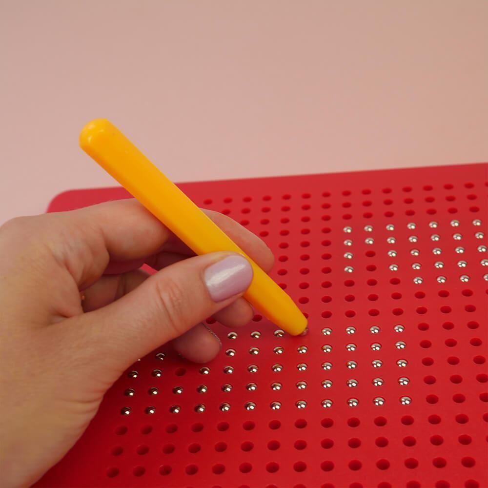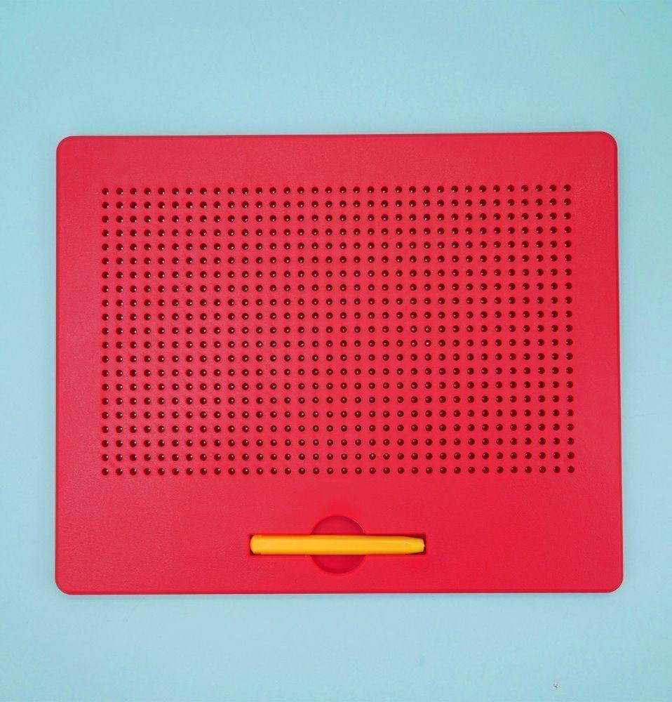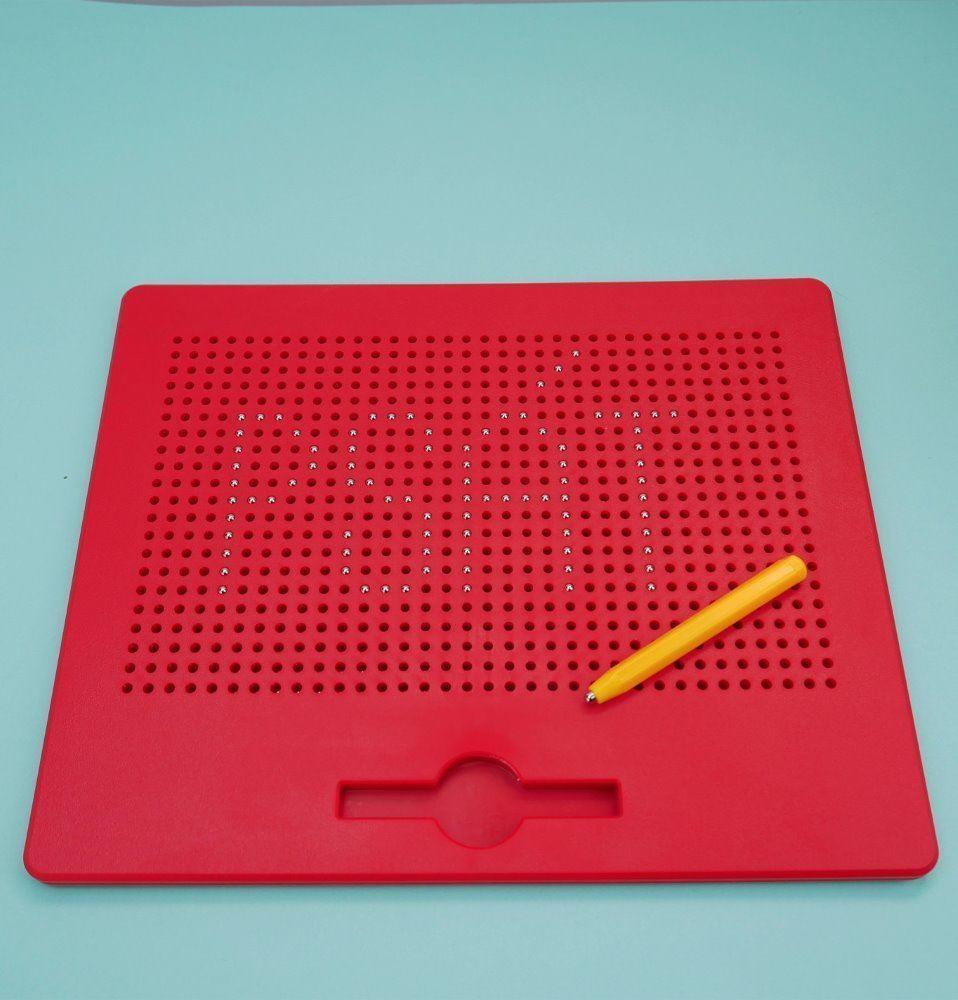 Kreslící tabulka s kuličkami! Zábavná hračky jak pro holky, tak pro kluky. Každý si s tabulkou vyhraje. K tabulce je přiložené také pero, které hraje důležitou roli při používání. Perem se kreslí po tabulce, kdy se kuličky přichytávají do dírek. Mazání obrázků nebo písmen či číslice je pak plochým hřbetem pera, anebo rukou. Opakované použití.