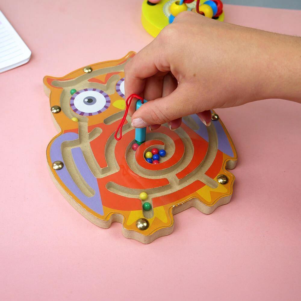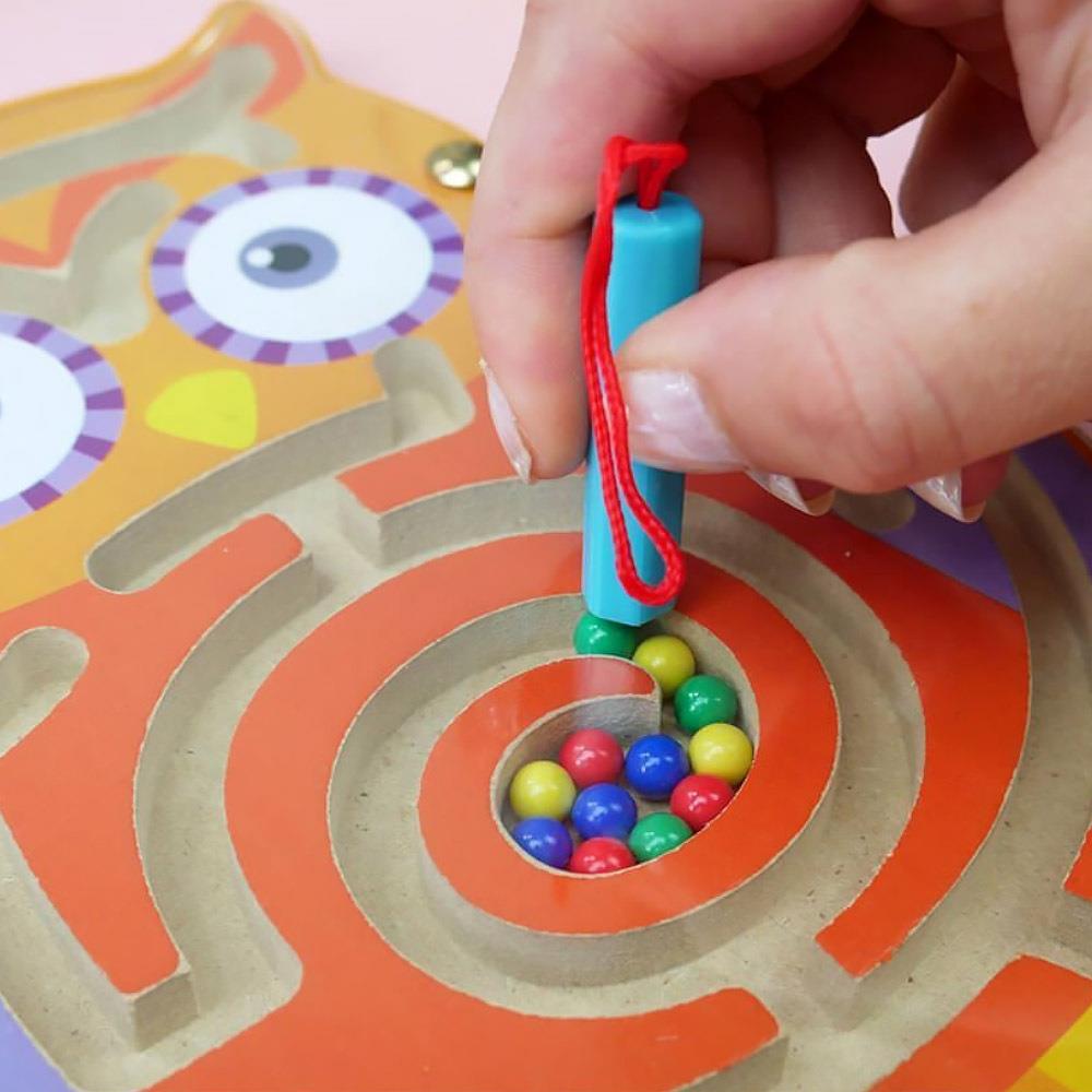 Magnetické bludiště je veselý a barevný hlavolam pro děti. Pomocí magnetické tužky se snažíte dostat kuličky do cíle. Zábavná hra pomáhá dětem rozvíjet motoriku a logické myšlení. Nažhavte dětem mozkové závity a procvičte šikovné ručky zábavným způsobem! Děti se naučí soustředěnosti a schopnosti vyřešit problém, aniž byste je do něčeho museli nutit. Dětský magnetický labyrint je vyroben z přírodního materiálu - dřeva. Hraje všemi barvami, tudíž vaše dítě zaujme už na první pohled!