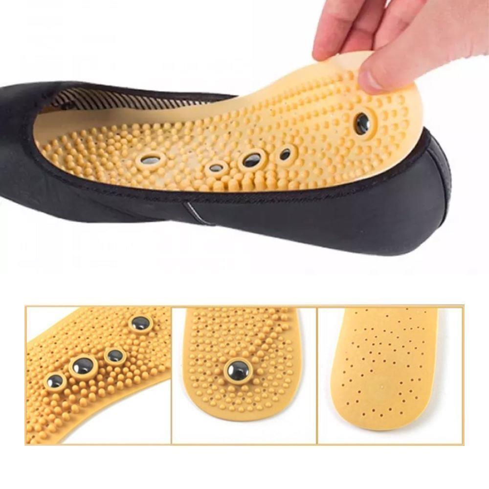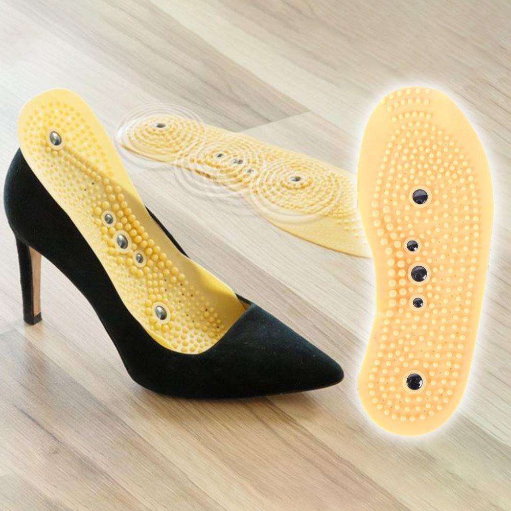 Dopřejte svým nohám maximální úlevu i při dlouhém dni na nohou. Tyto akupresurní magnetické masážní vložky pomáhají zmírnit bolest a navrací chodidlům pocit lehkosti. Díky 5 strategicky umístěným masážním magnetům přispívají nejen k úlevě unavených nohou, ale zároveň podporují správnou funkci celého organismu. Zlepšují činnost vnitřních orgánů včetně srdce, cév a imunitního systému. Nohy si s nimi dopřejí potřebnou relaxaci v běžné obuvi i při sportování. Zasloužíte si pohodu a komfort na každém kroku!