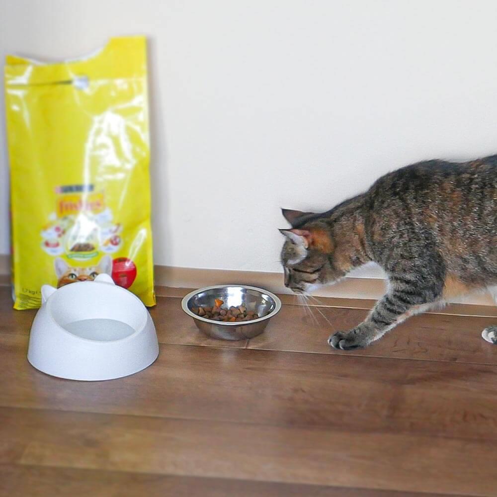 Stylová a praktická miska je skvělou volbou pro každého majitele kočky. Její dvoudílné provedení umožňuje použití každé části zvlášť – kovová miska je perfektní na jídlo, zatímco plastová část poslouží na vodu.