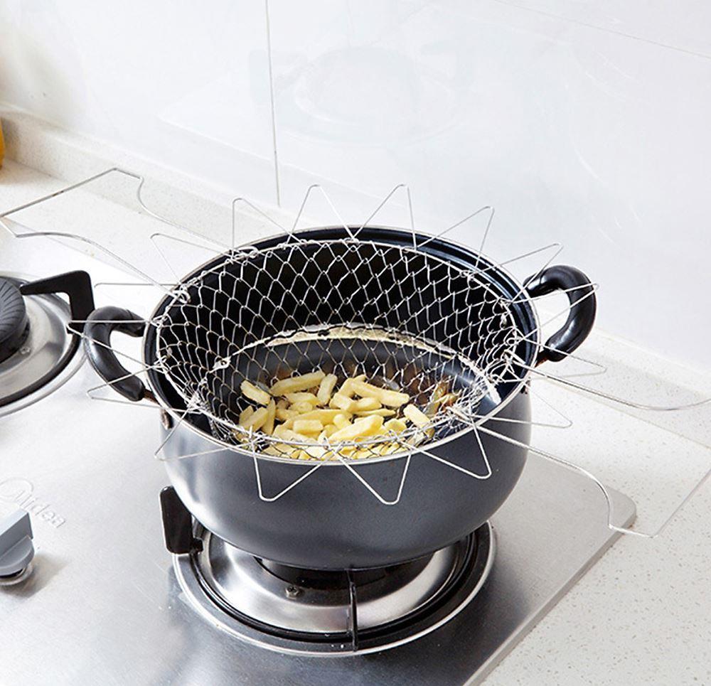 Košík je vyrobený z odolné nerezové oceli, snadno se skládá a rozkládá a ve složeném stavu zabere minimum místa. Stane se vaším nepostradatelným parťákem při vaření – ať už potřebujete vařit, smažit nebo omývat suroviny.