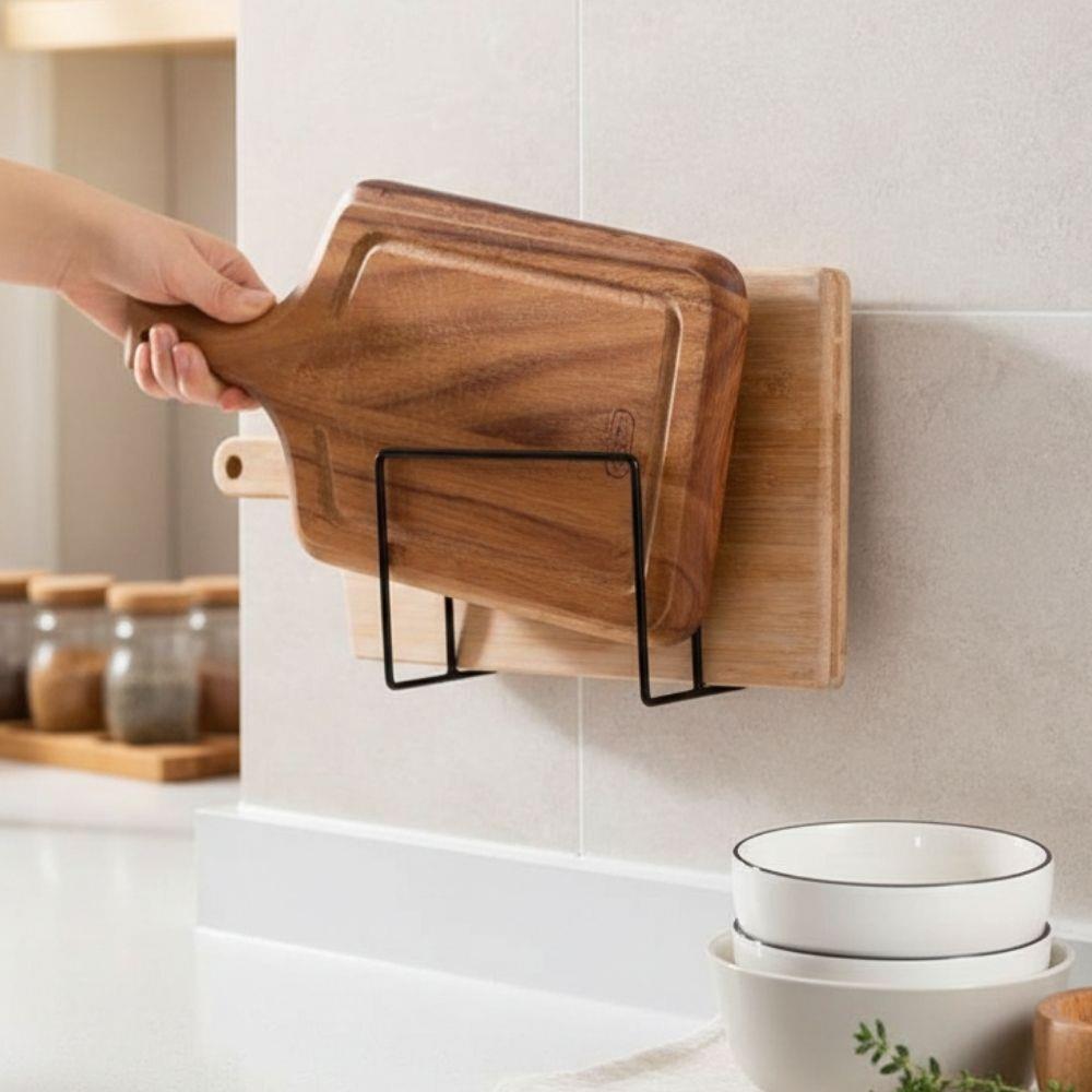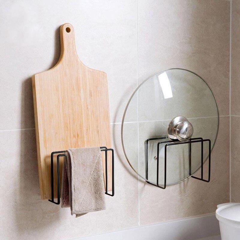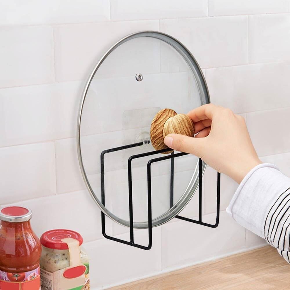 Praktický dvojitý držák, se kterým si snadno uspořádáte kuchyňské potřeby na své vlastní místo. Moderní držák v čeném provedení lze využít jako odkládací místo pro pokličky během vaření, ale také jako držák pro ukládání nádobí do skříňky. Držák stačí nalepit na vybrané místo s pomocí samolepících háčků.