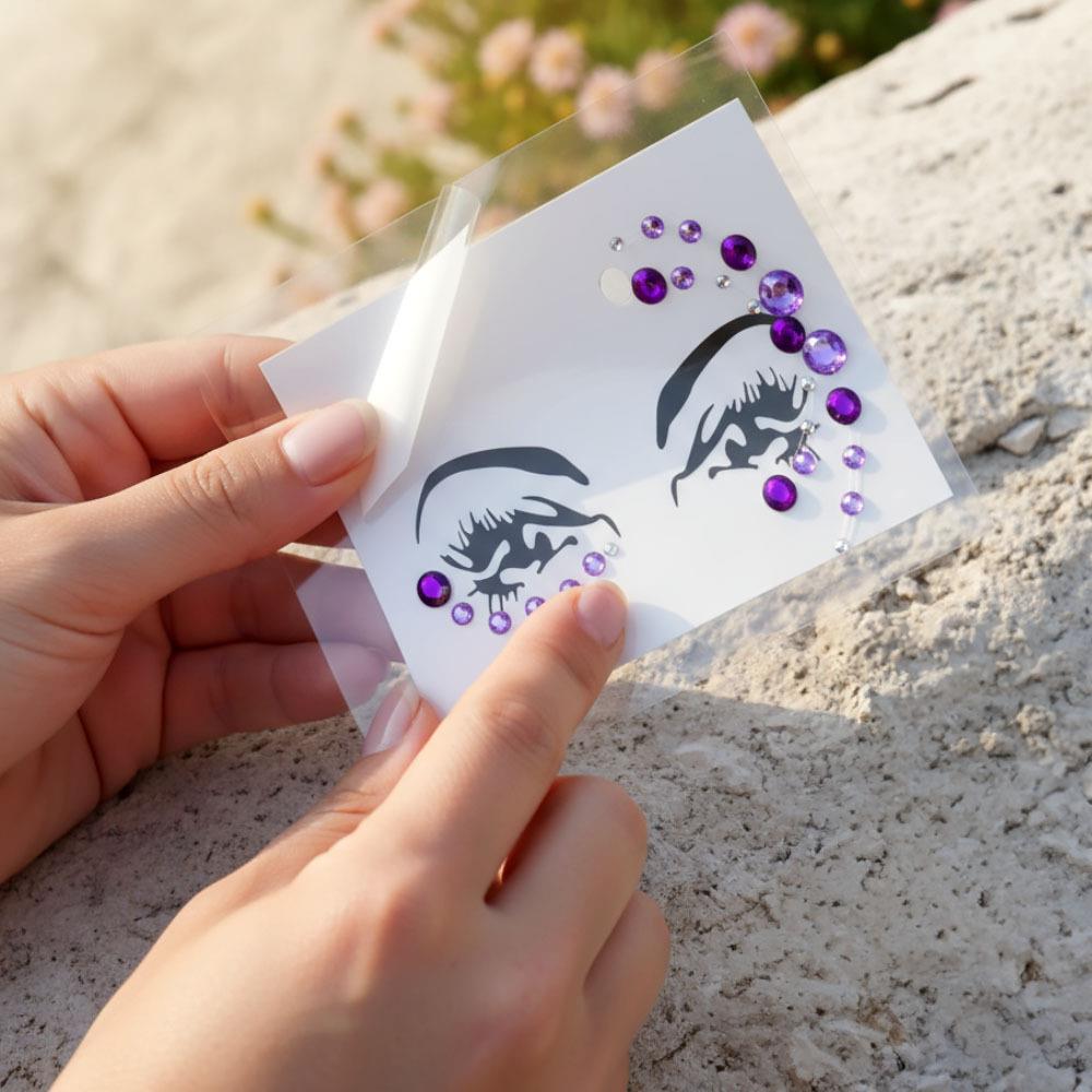 Potřebujete doplněk na párty anebo máte zkrátka ráda výstřední doplňky? Vyzkoušejte tyto kamínky na obličej, které skvěle doplní váš outfit. Nalepovací kamínky na obličej vás doslova rozzáří. Aplikace se provádí na umytý, odlíčený a suchý obličej. Kamínky jednoduše sejmete z fólie a nalepíte na obličej. Lze je použít opakovaně, ale s každým dalším použitím se snižuje lepivost.