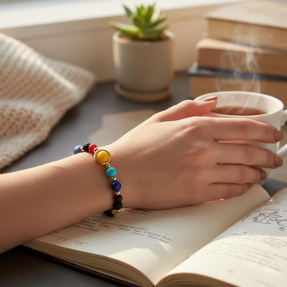 Elegantní a nápaditý náramek se Sluneční soustavou se bude na vaší ruce vyjímat.