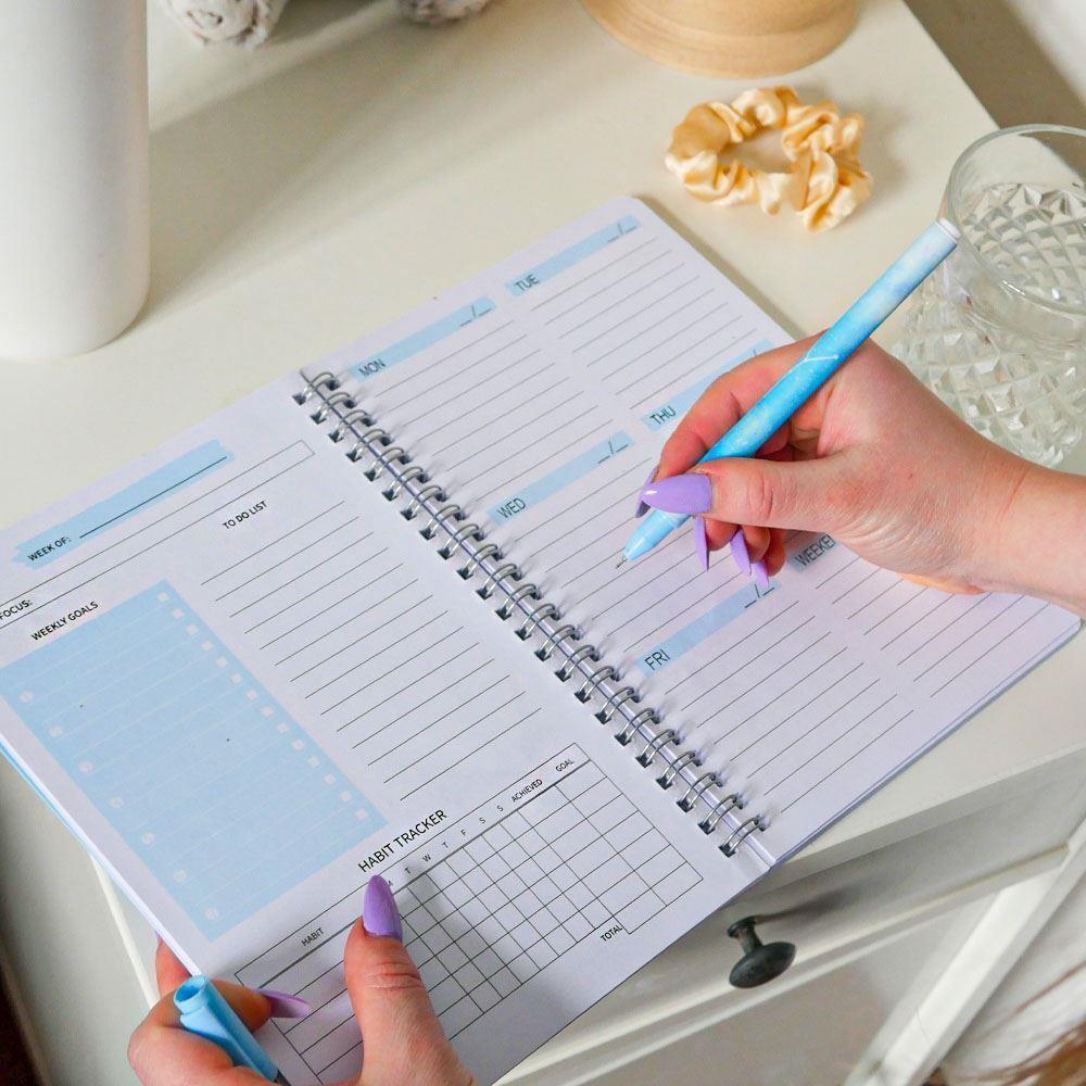 Dělá vám problém si zorganizovat den nebo vám dokonce chybí motivace? Tak to vás zajisté potěší tento diář. Do diáře si můžete začít psát své každodenní úkoly, sny a cíle, datumy na sebe přitom nemusí navazovat. Díky tomuto diáři už nezapomenete na nic, co musíte v daný den stihnout udělat. Je rozvržen do 4 sekcí - týdenní cíle, na co se chcete v tom daném týdnu zaměřit, plánování dnů, poznámky kde si píšete o dodržování svých návyků. Diář obsahuje nápisy v anglickém jazyce.