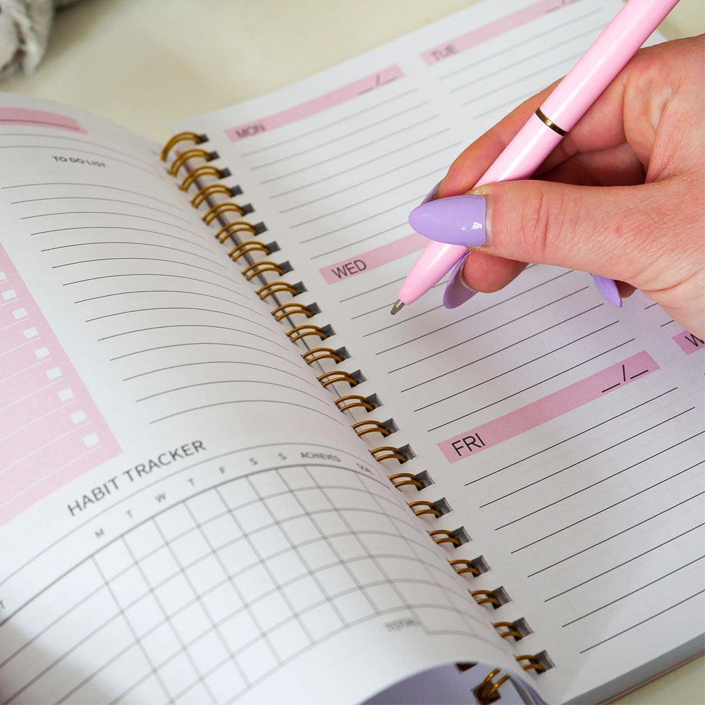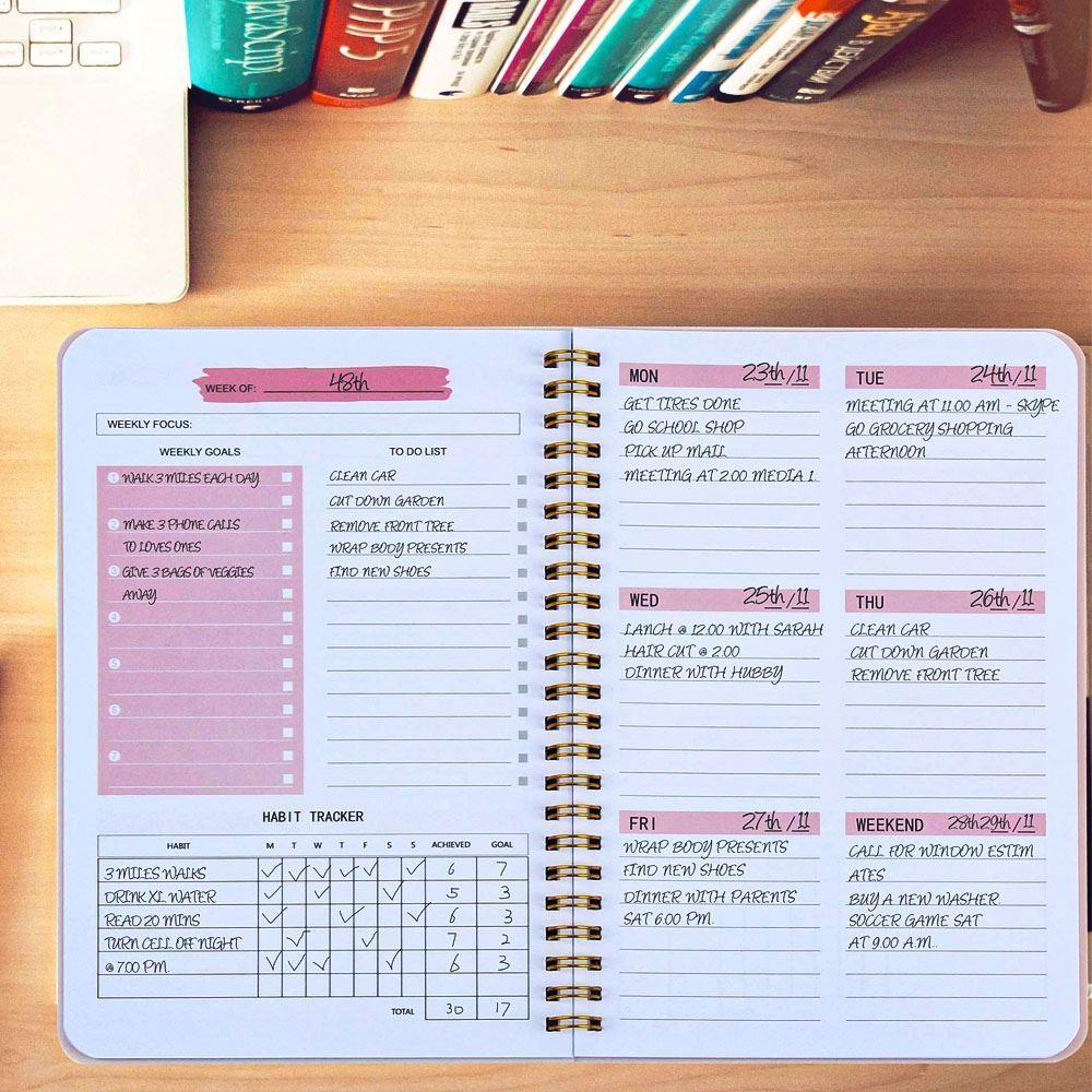 Dělá vám problém si zorganizovat den nebo vám dokonce chybí motivace? Tak to vás zajisté potěší tento diář. Do diáře si můžete začít psát své každodenní úkoly, sny a cíle, datumy na sebe přitom nemusí navazovat. Díky tomuto diáři už nezapomenete na nic, co musíte v daný den stihnout udělat. Je rozvržen do 4 sekcí - týdenní cíle, na co se chcete v tom daném týdnu zaměřit, plánování dnů, poznámky kde si píšete o dodržování svých návyků. Diář obsahuje nápisy v anglickém jazyce.