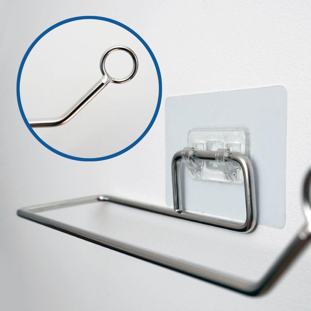 Snadná instalace pomocí lepicí pásky Vysoce kvalitní nerezová ocel Vhodné i pro textilní utěrky, toaletní role nebo čisticí hadříky Nerezovou část lze bez problémů odstranit