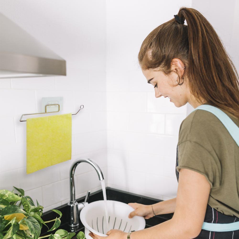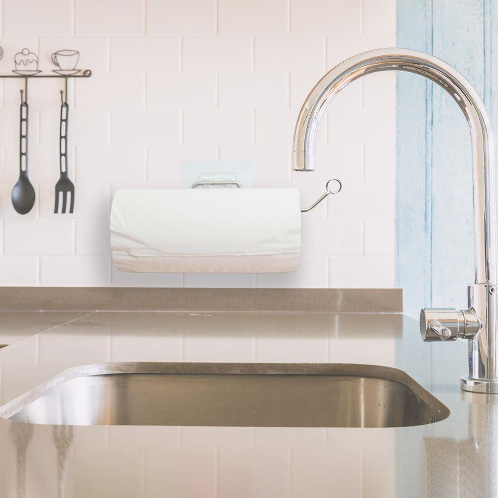 Praktický držák na utěrky využijete v každé domácnosti. Díky samolepicí základně jej snadno připevníte přesně tam, kde ho potřebujete – například nad dřez, kde poslouží na papírové i látkové utěrky. Skvěle se ale hodí také na toaletě jako držák toaletního papíru nebo do komory pro zavěšení hadrů na úklid.