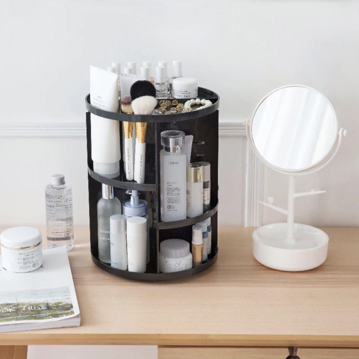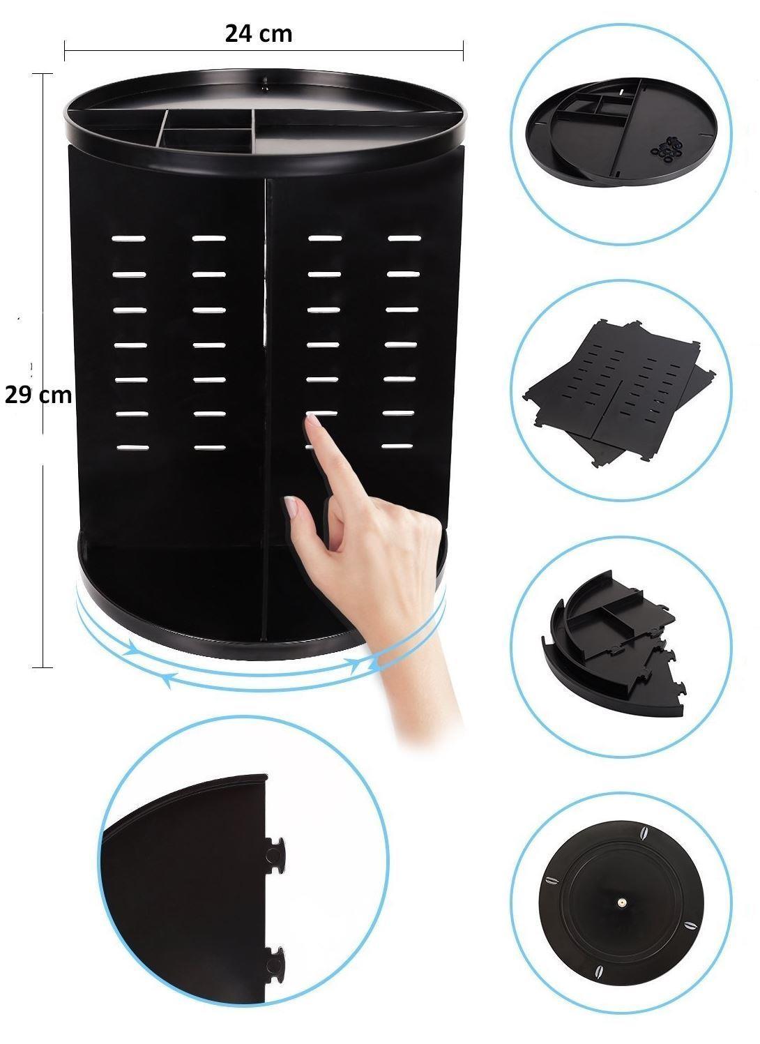 Tento otočný organizér nabízí spoustu místa! Sestavení je velice jednoduché a zvládne ho každý! Rozkládání je také snadné. Veškeré díly, které potřebujete jsou součástí balení. Organizér lze sestavit podle toho, jak vy budete chtít. Nic navíc potřebovat nebudete. Organizér je otočný o 360°, díky tomu máte ke kosmetice pohodlný přístup. Organizér obsahuje spoustu přihrádek, nemusíte mít vůbec žádné obavy, že se tam vaše kosmetika nevejde.