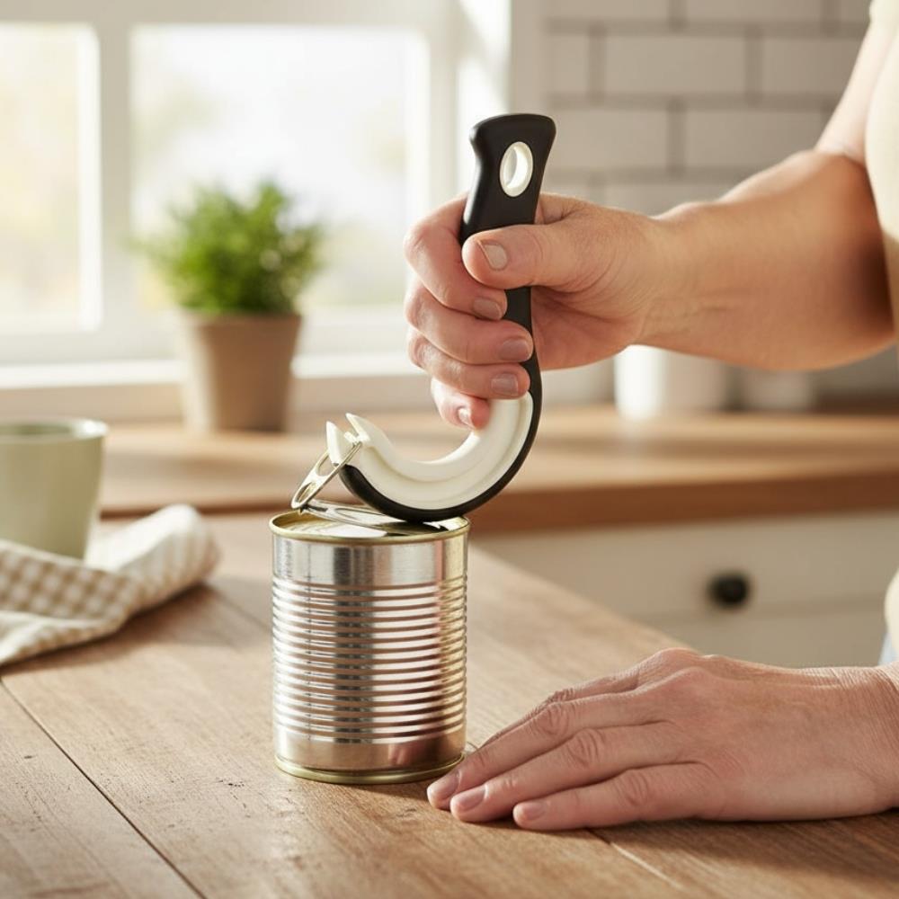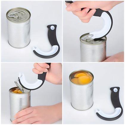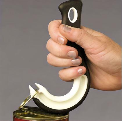 Praktický otvírák ve tvaru háku pro snadné a bezpečné otevírání plechových víček. Lehký, kompaktní a vždy po ruce.