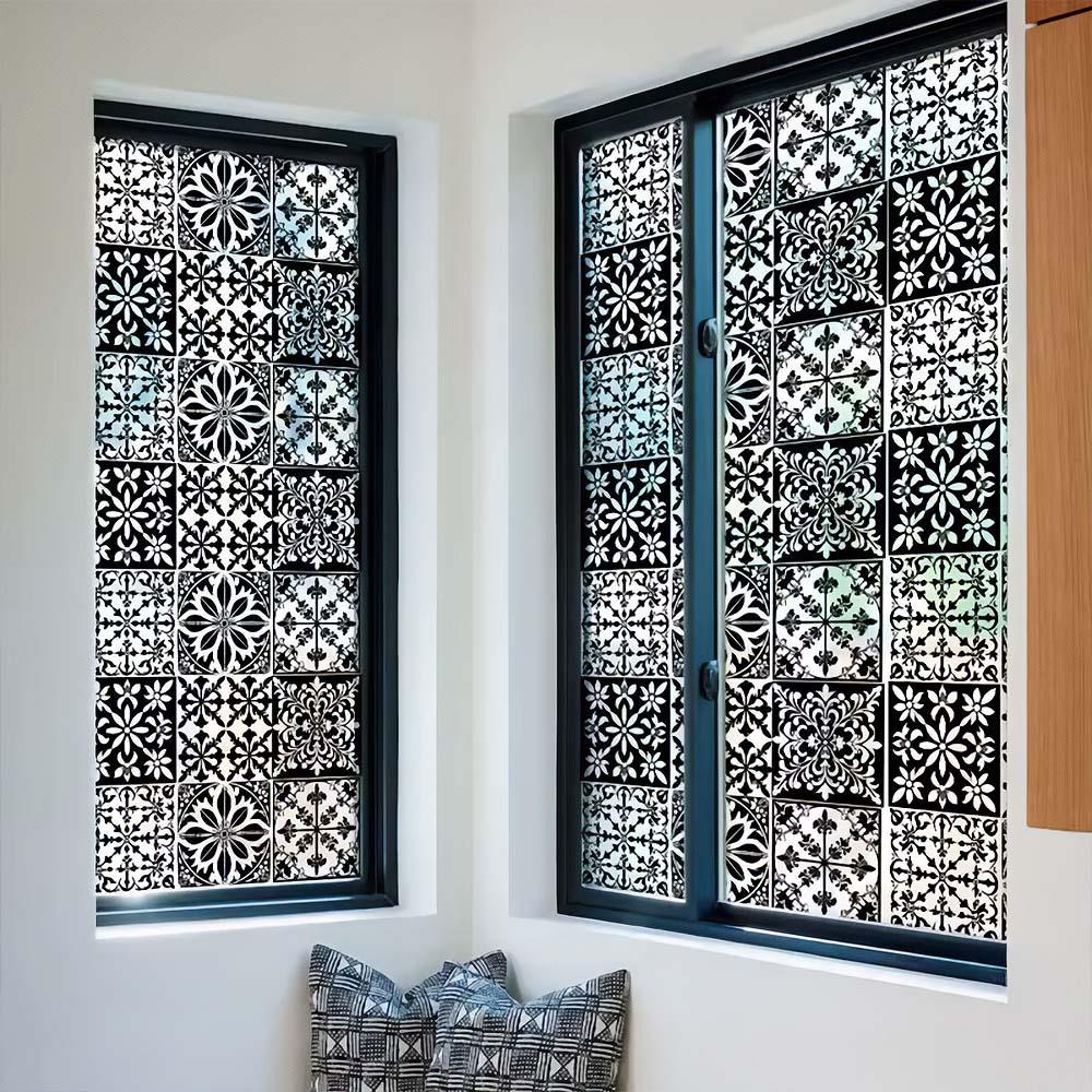 Samodržící dekorativní fólie s mozaikovým vzorem zaručí soukromí a styl. Snadno se aplikuje bez lepidla, propouští světlo a lze ji opakovaně použít.