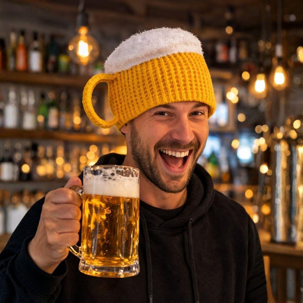 Hledáte nápaditý doplněk, který zaujme na první pohled? Pletená čepice ve tvaru půllitru s uchem pobaví každého milovníka piva i pořádného večírku. TIP: Pro stabilní tvar ouška doporučujeme ucho půllitru naškrobit.