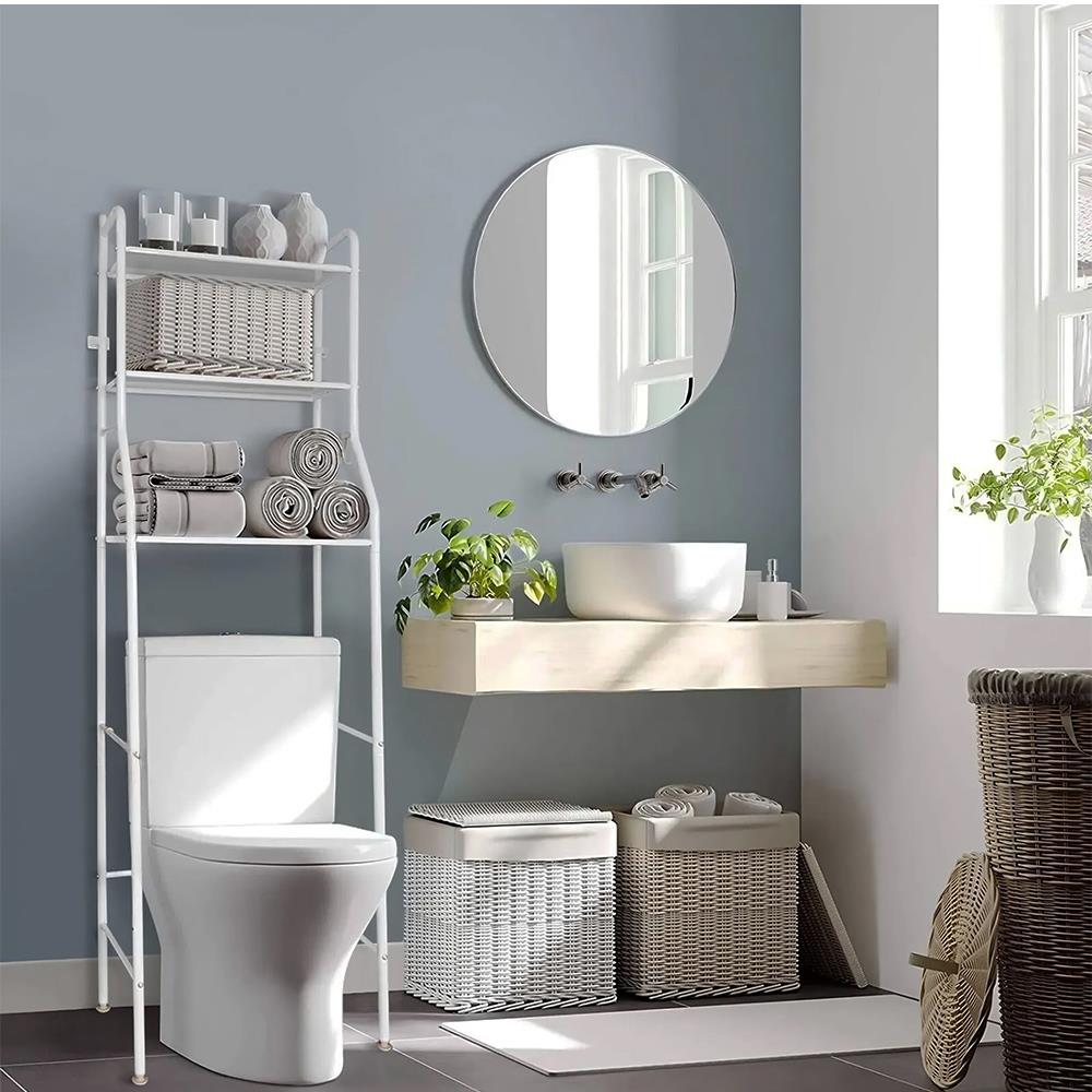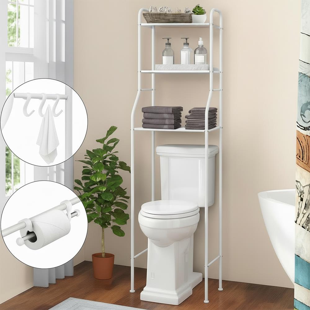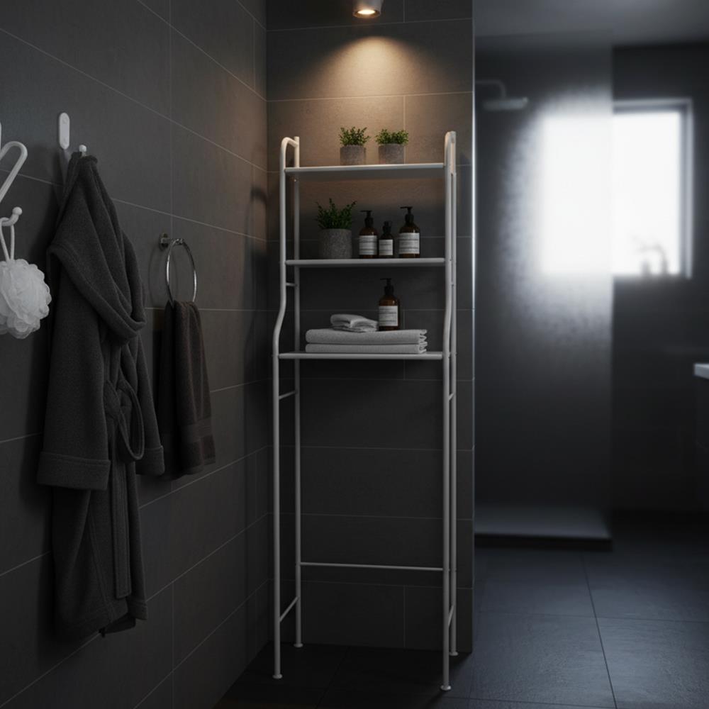 Udělejte si ve své koupelně pořádek a dodejte jí styl s tímto policovým regálem nad toaletu v moderní bílé barvě. Chytrá konstrukce účelně využívá volný prostor nad WC, takže nezabere místo na zemi. Na třech prostorných policích uskladníte vše potřebné – ručníky, kosmetiku, čisticí prostředky i vaše oblíbené dekorace. Regál je vyrobený z pevného kovu, který zaručuje stabilitu a dlouhou životnost.