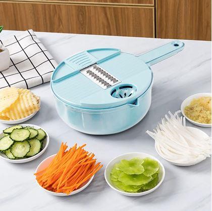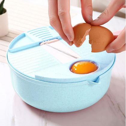 Pomocník do kuchyně vás nadchne svou praktičností. Celkem 8 funkcí, které využijete při běžném domácím vaření. Krájení zeleniny na plátky, strouhání, drcení, oddělování žloutku od bílku, tření česneku. Pomocníka ale využijete také jako obyčejnou misku. Miska má výlevku a také funguje jako cedník při omývání ovoce nebo zeleniny. Dále lze na misku nasadit rukojeť pro snadnější manipulaci.